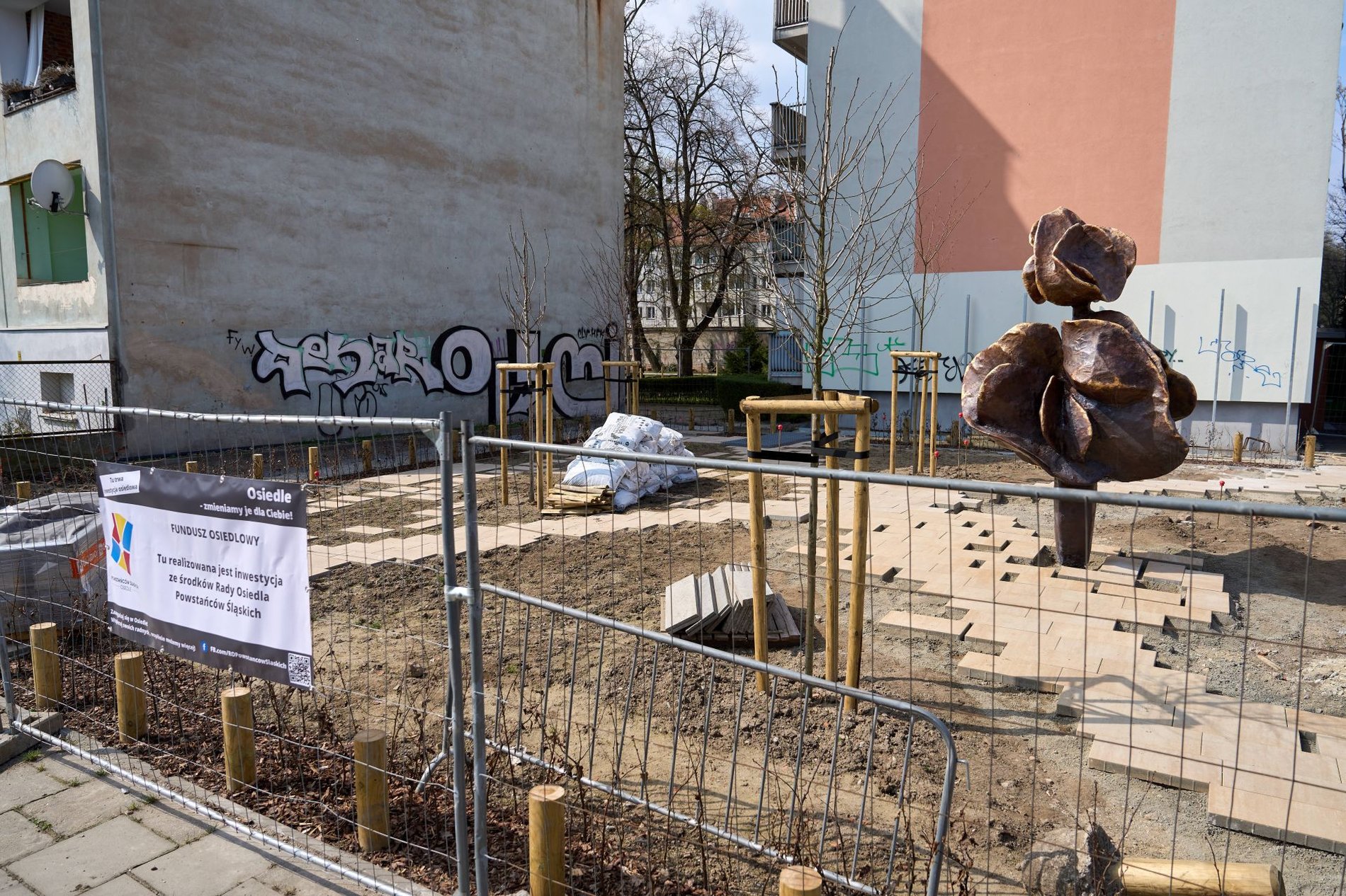 „Dziękujemy Radzie Osiedla Powstańców Śląskich za dotację z Funduszu Osiedlowego i pomysł z instalacją artystyczną” - napisał na Facebooku Zarząd Zieleni Miejskiej.