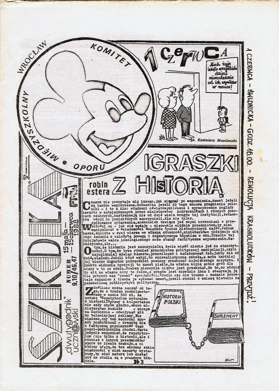 – W latach 80. niemal w każdym liceum wychodziły niezależne gazety przygotowywane przez uczniów. „Szkoła” ukazywała się co dwa tygodnie, a potem co miesiąc. Nakład sięgał 11 tysięcy egzemplarzy. Nasze pismo dochodziło do wszystkich szkół we Wrocławiu, do wielu miejsc na Dolnym Śląsku, a nawet do Gdańska, Krakowa, Warszawy — opowiada wrocławianka.