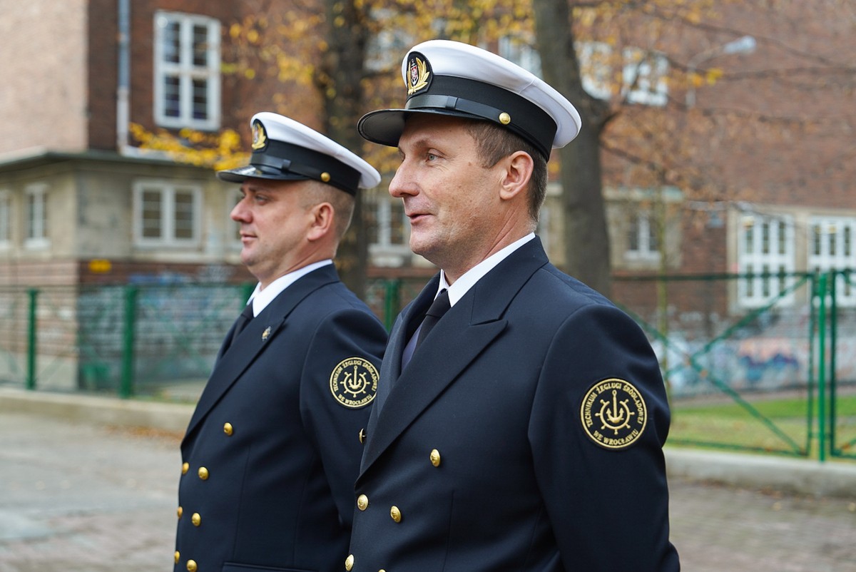 Ślubowanie pierwszoklasistów w Technikum Żeglugi Śródlądowej we Wrocławiu. Na zdjęciu młodzi ludzie w marynarskich mundurach Zuzanna Szarczyńska / www.wroclaw.pl