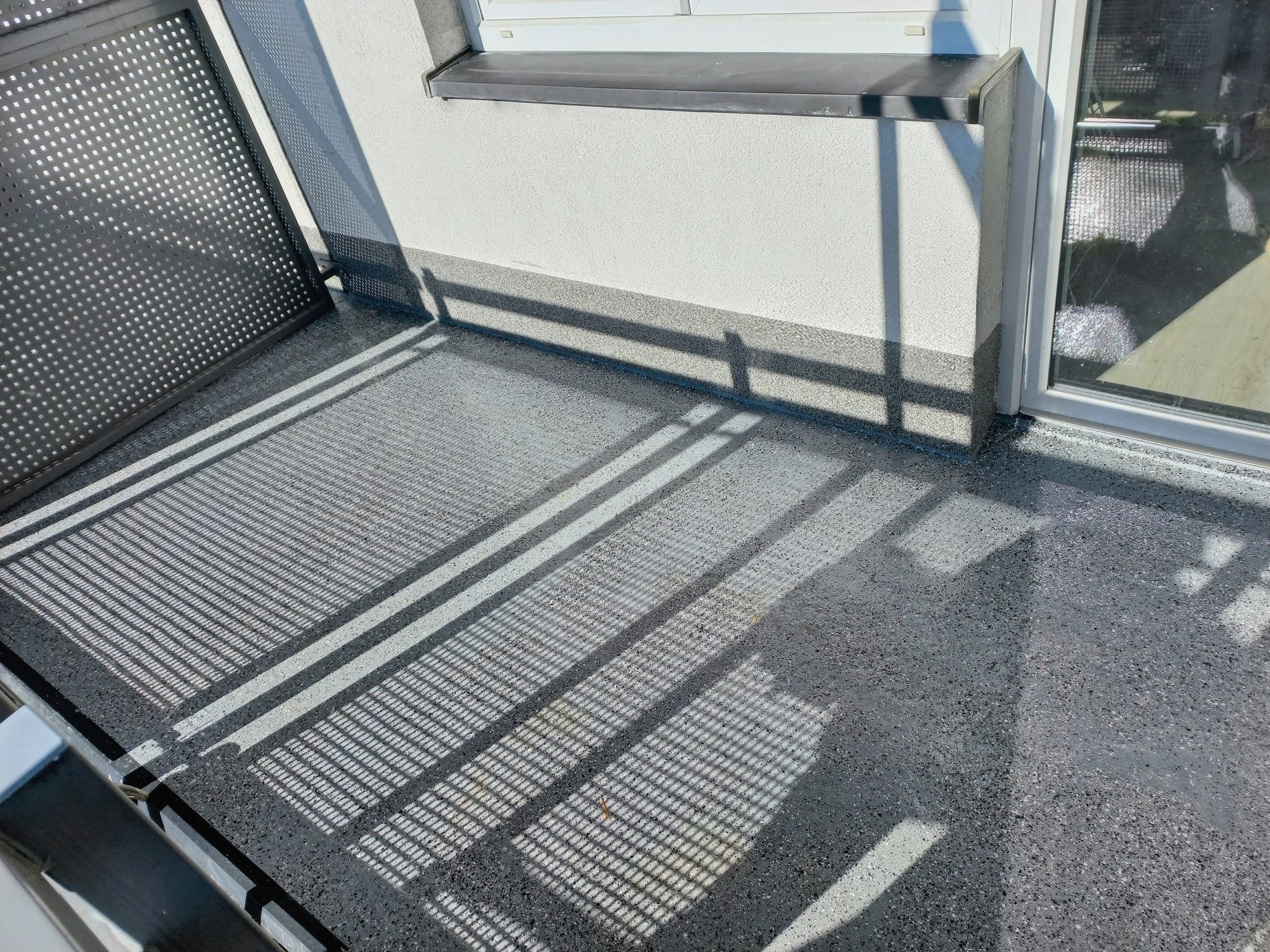 • wyłożono nową nawierzchnię balkonów, z materiału żywicznego, który ma właściwości przeciwpoślizgowe (nakładane warstwy: warstwa gruntująca, dwukrotnie warstwa zasadnicza, warstwa dekoracyjna/antypoślizgowa oraz warstwa zamykająca),