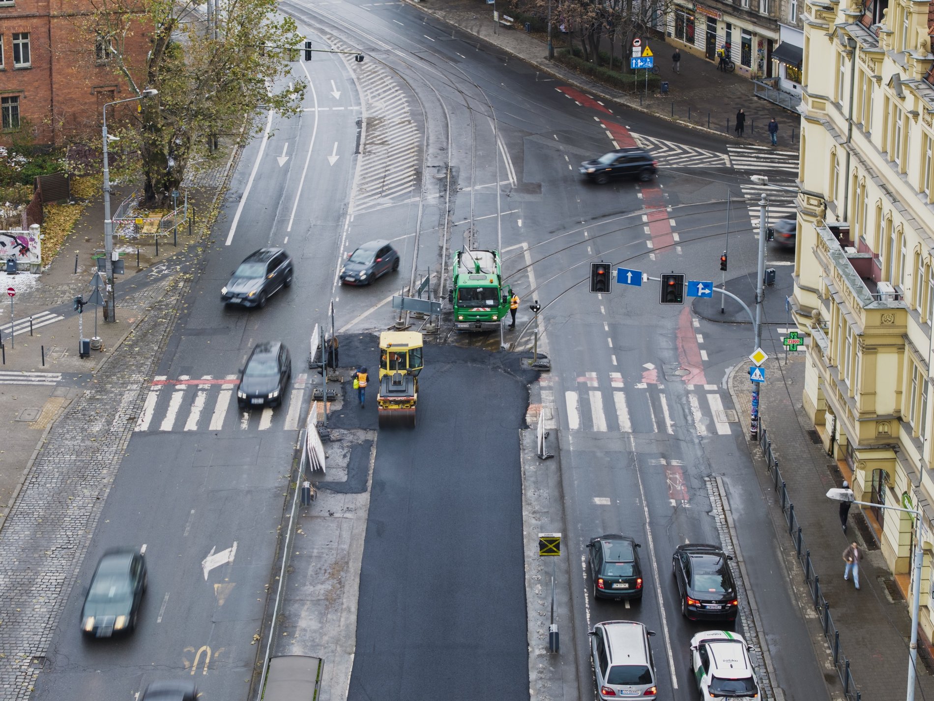Na ul. Drobnera przy skrzyżowaniu z Dubois w miejscu torowiska budowana jest droga dla samochodów. To sposób wykonawcy, aby zrealizować inwestycję bez zamykania drogi dla kierowców. Jak jeżdżą tramwaje i do kiedy potrwają pracę przeczytasz TUTAJ.