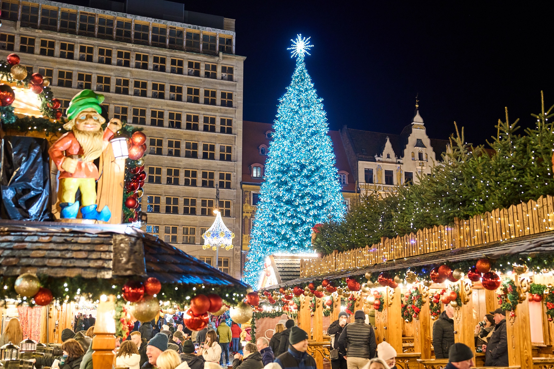 Jarmark Bożonarodzeniowy na Rynku i pięć lokalnych, na choince 120 tys. światełek i 3 tys. bombek, siedem dodatkowych choinek w mieście i ledowe postacie na Bastionie Sakwowym. Tak w świątecznym czasie będzie prezentował się Wrocław. Zobacz, jak sprawnie dojechać.