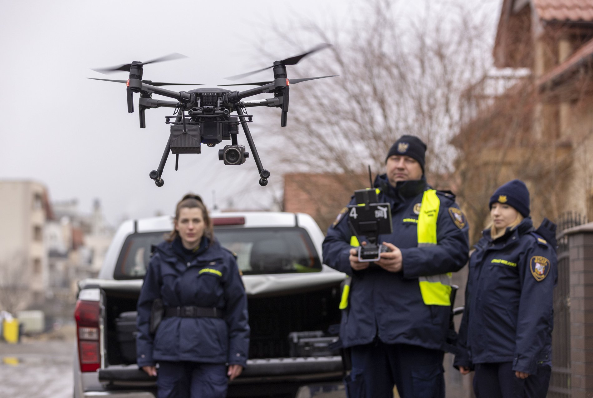 Powiększ obraz: <p>Funkcjonariusze dronami sprawdzają dym wylatujący z komin&oacute;w&nbsp;</p> Tomasz Hołod