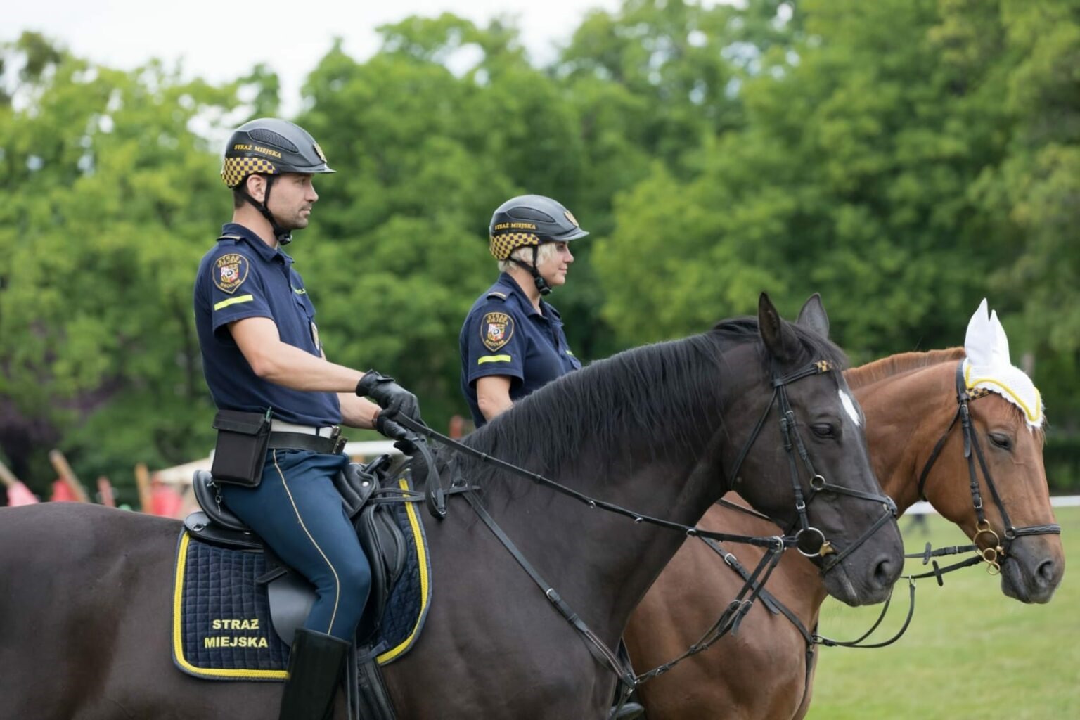 Powiększ obraz: <p>Funkcjonariusze Straży Miejskiej Wrocławia na koniach&nbsp;</p> Straż Miejska Wrocławia