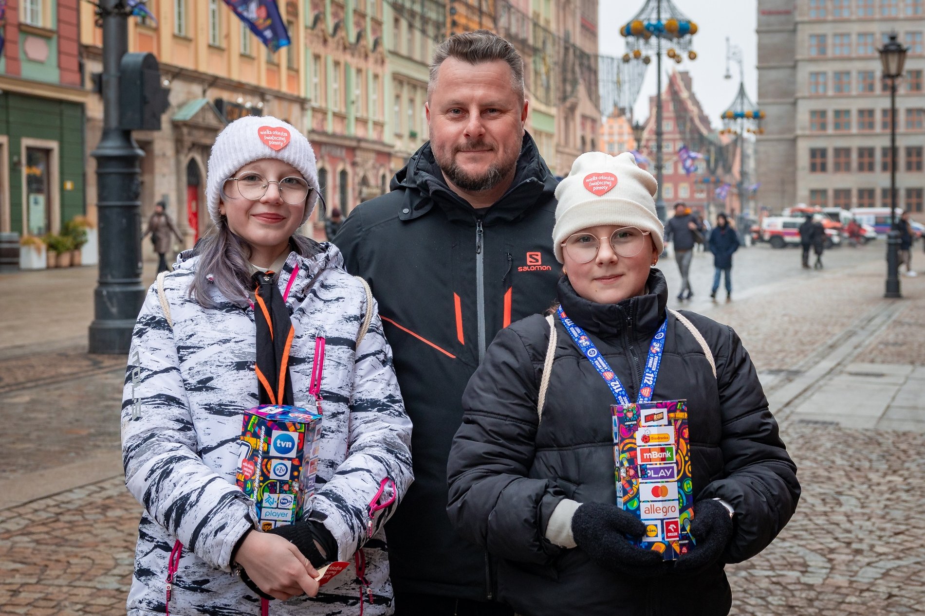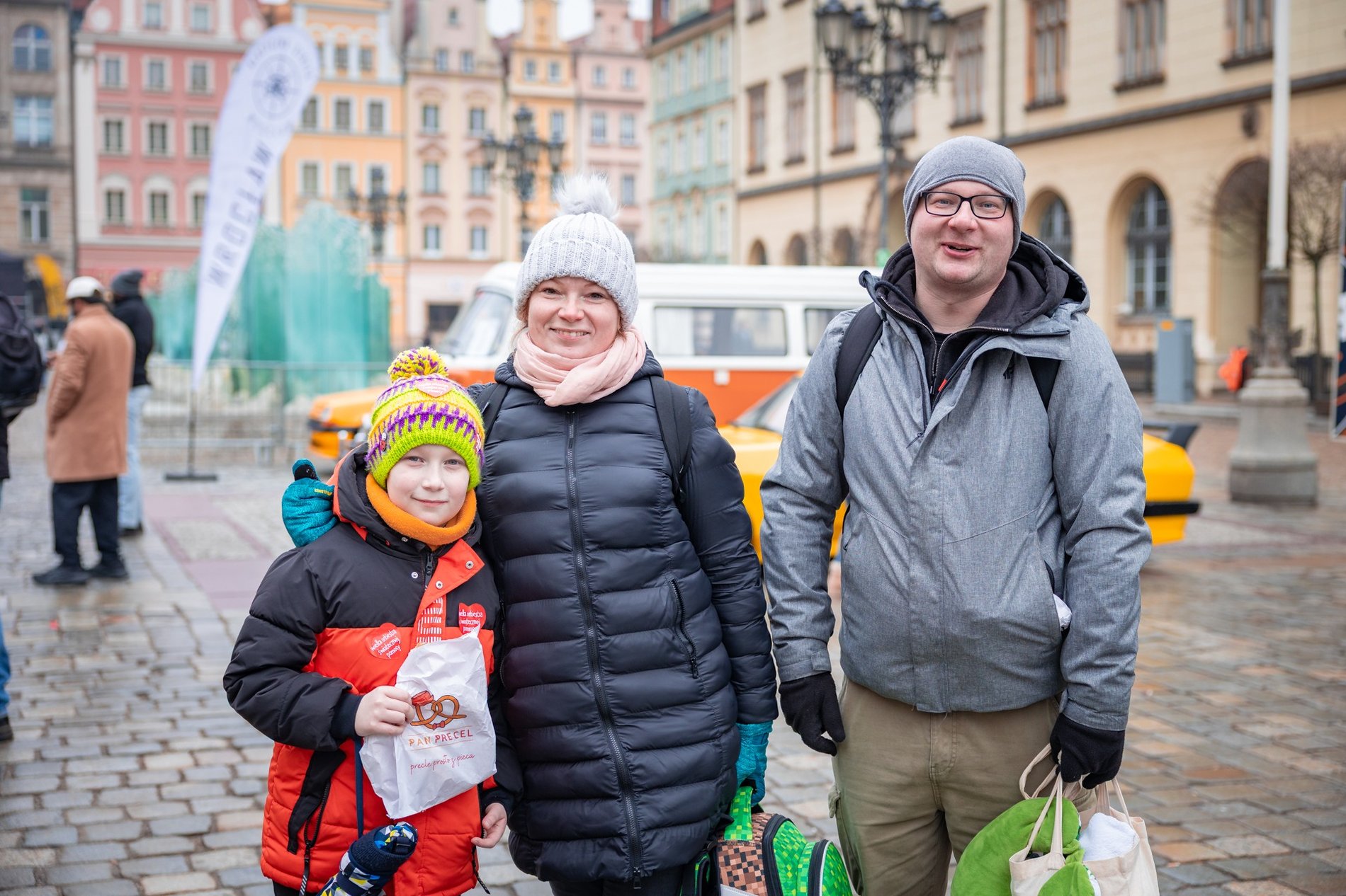Spotkaliśmy również młode wolontariuszki z tatą Dominikiem, który robił za ochroniarza i cichego wspólnika. Ula i Martyna, pierwszy raz w życiu z puszkami, na poranną wilgoć i chłód nie zwracały uwagi: — Jesteśmy harcerzami i koleżankami z klasy. Chcemy dobrze dla małych dzieci. Na co dzień uczymy się w podstawówce i mieszkamy na Oporowie, gdzie ludzie są bardzo życzliwi. — Wracamy na targ Świebodzki. Tam jest teraz najlepiej, bo ludzi najwięcej — dodał Dominik.
