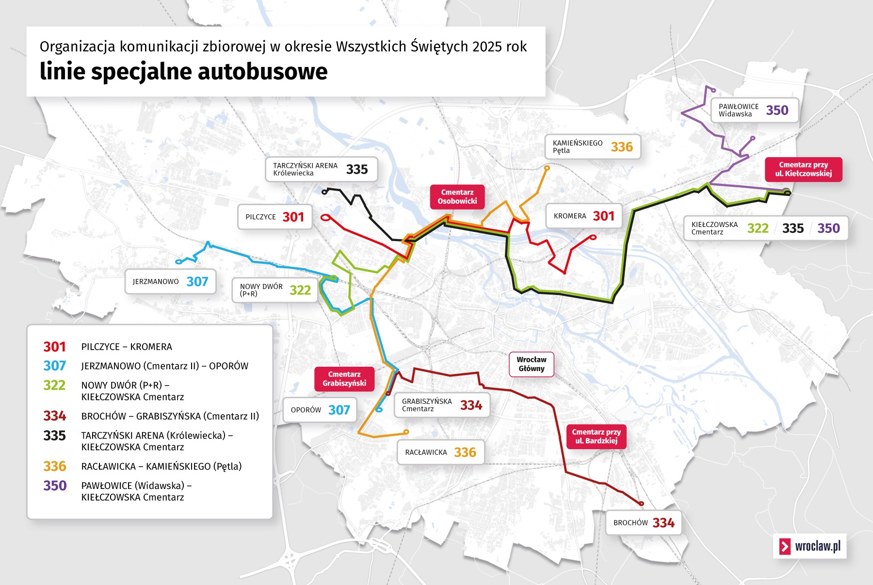 - 25 i 26 października (sobota i niedziela) - autobusy i tramwaje na cmentarze we Wrocławiu