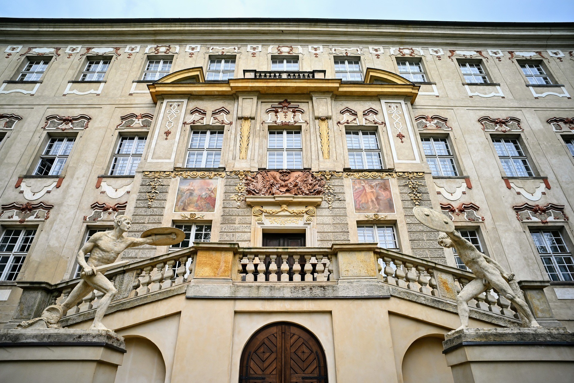 W 1755 roku ród Sułkowskich zostaje uhonorowany tytułem książęcym i na tę okoliczność Aleksander Józef Sułkowski wmurowuje nad balkonem w części północnej olbrzymi kartusz herbowy rodu.