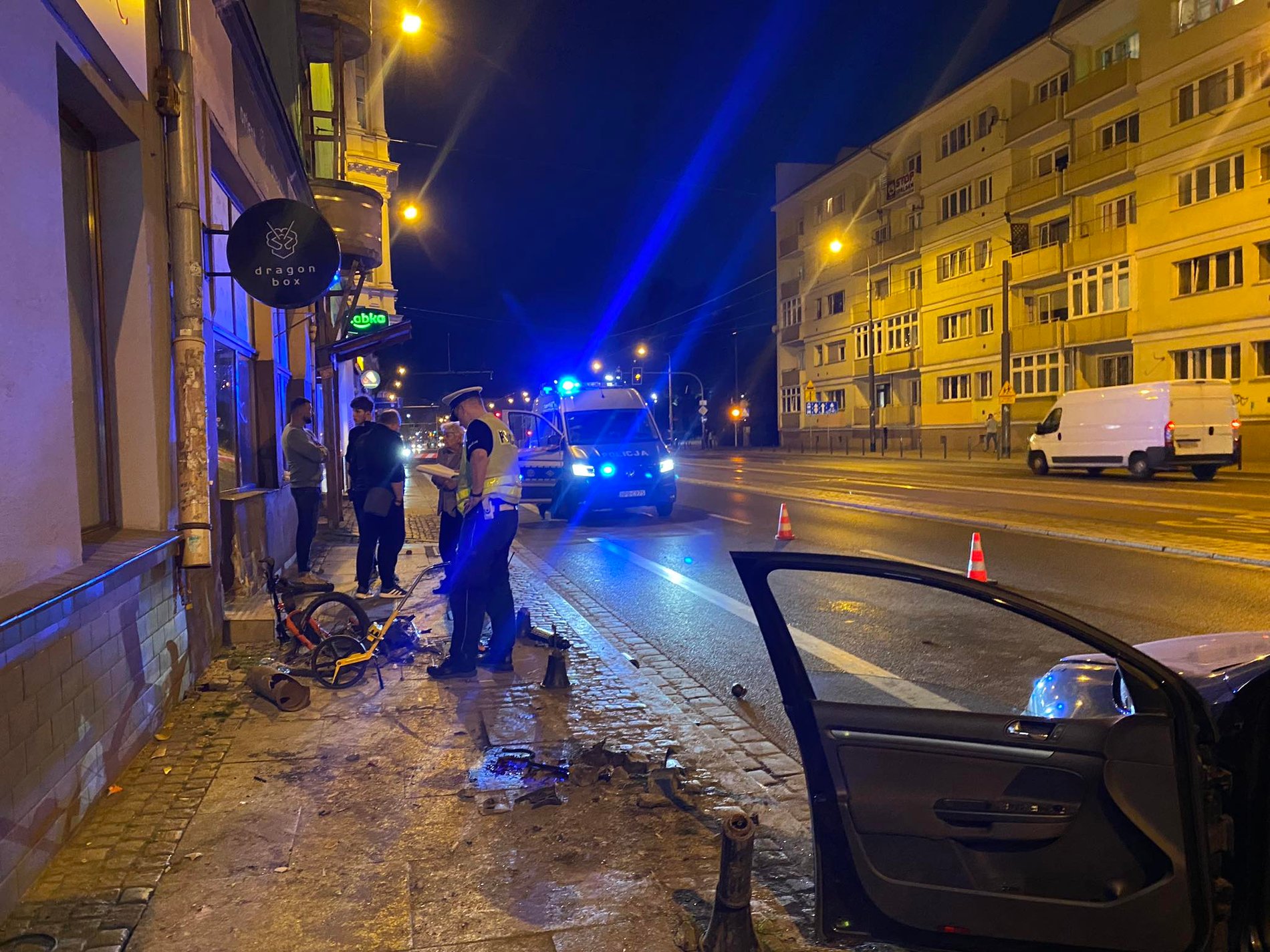3. Auto na torowisku, drugie na chodniku. Dwie groźnie wyglądające kolizje we Wrocławiu (ZDJĘCIA)