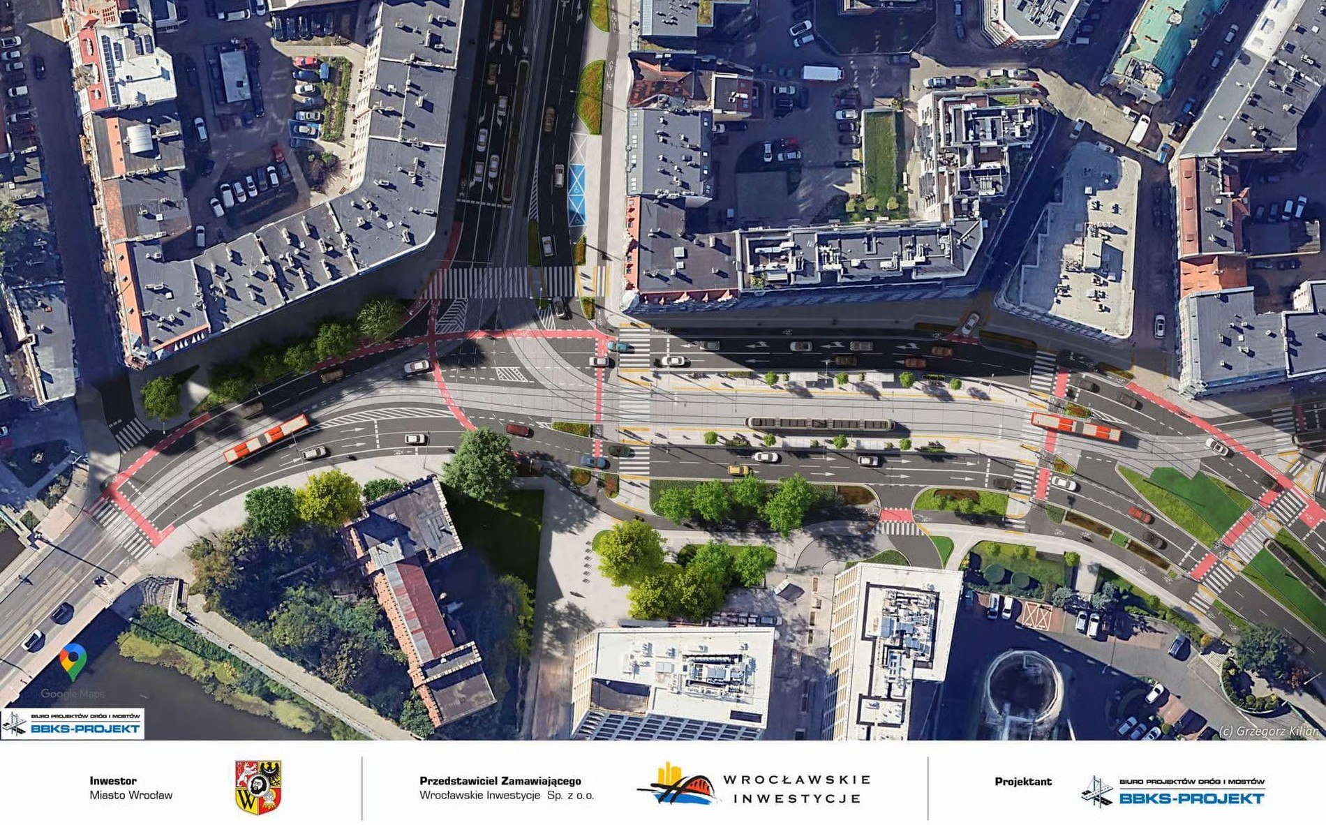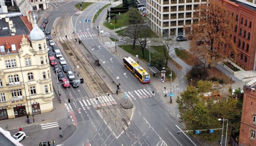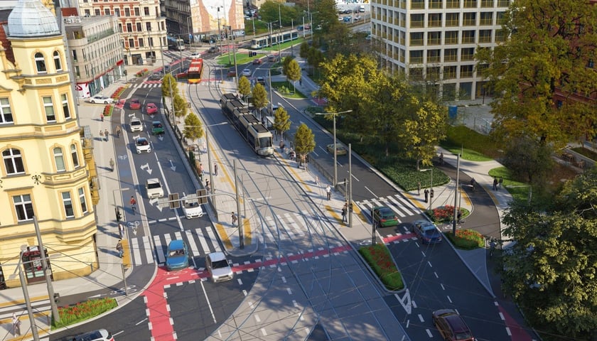 Zmieni się tu wszystko. Obecny układ drogowo-torowy zostanie zlikwidowany i powstanie nowy, inny, ze zmienioną geometrią dróg - jezdnie i torowiska będą w innych miejscach tak, aby wszystko się zmieściło. Co ważne, na powstaniu nowoczesnego węzła przesiadkowego nie stracą kierowcy - wciąż będą mieli tyle samo pasów ruchu. A przy tym rowerzyści zyskają nowe drogi rowerowe skomunikowane z tymi na Pomorskiej i w dalszej części Dubois.