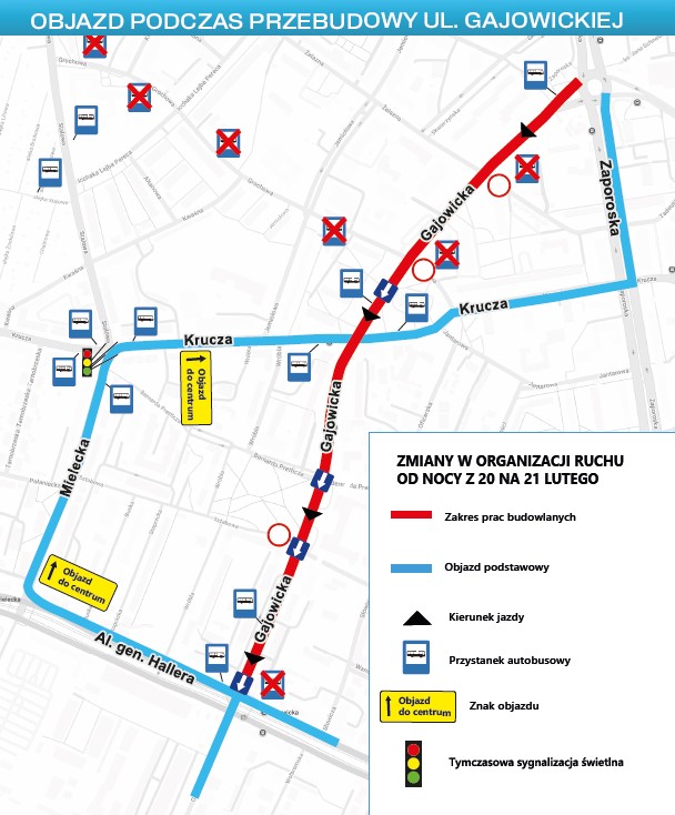 Ograniczenie ruchu na ulicy Gajowickiej nastąpi w nocy z 20 na 21 lutego (z piątku na sobotę). Jak będziemy jeździć od najbliższego weekendu?