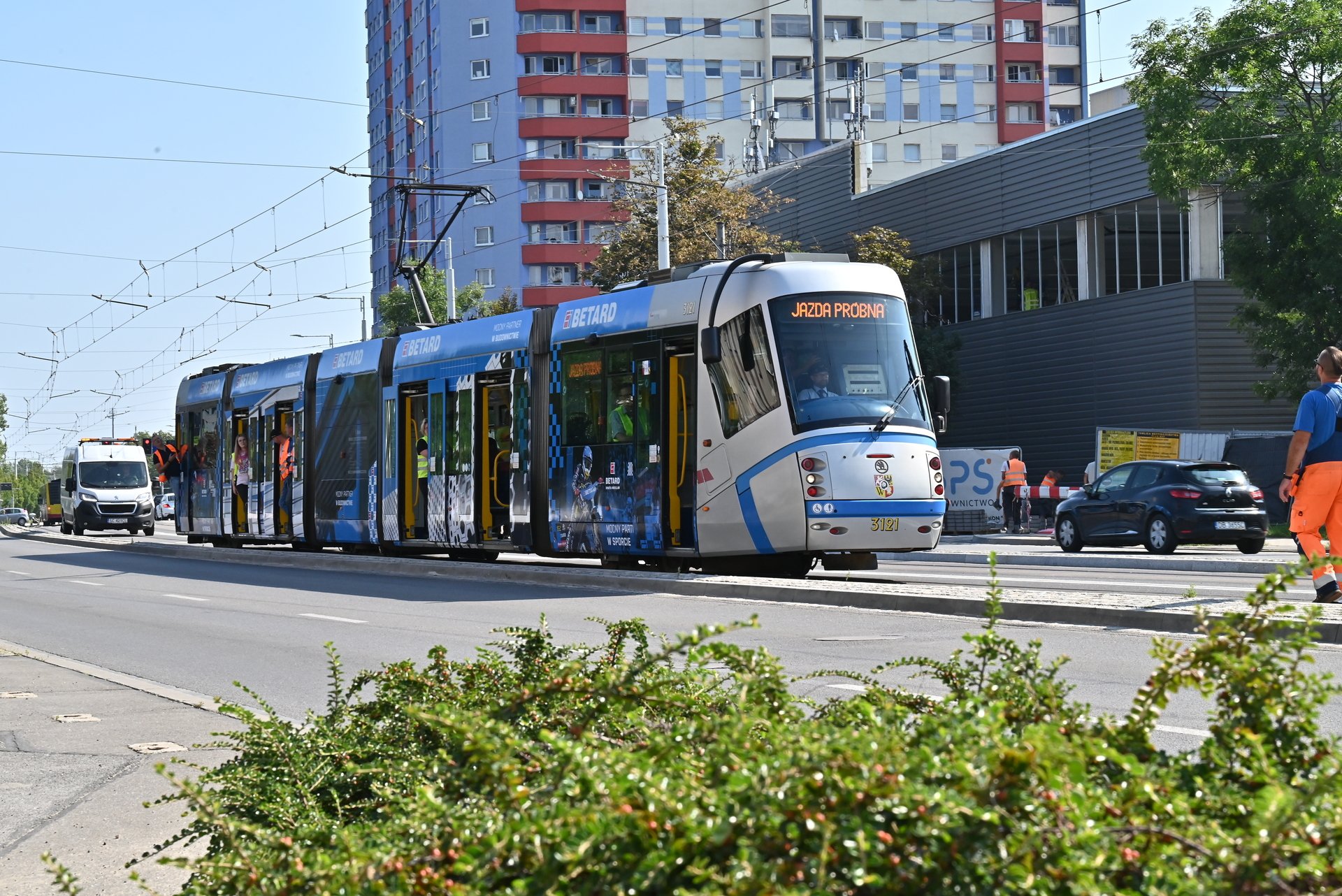 Próbny przejazd tramwaju nowym odcinkiem trasy autobusowo-tramwajowej. Testowany był odcinek od przystanku Park Biznesu do przystanku Rogowska.