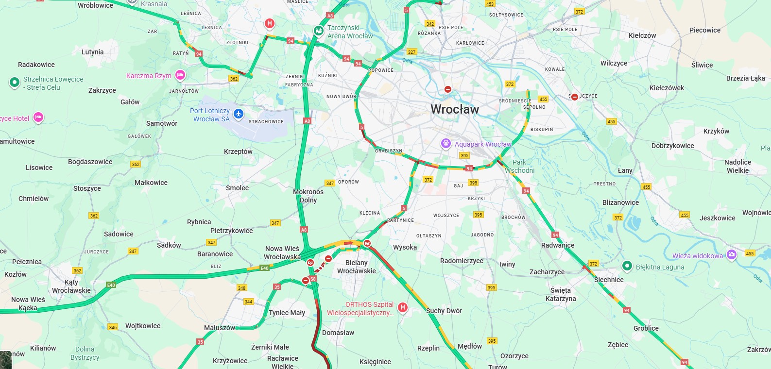 3 / 5 Wróć do artykułu Potężny korek na A4 na węźle Bielany Wrocławskie Potężny korek na A4 na węźle Bielany Wrocławskie google maps Przejdź do poprzedniego zdjęcia. Poprzednie Następne Przejdź do kolejnego zdjęcia. Na czerwono zaznaczony korek na A4