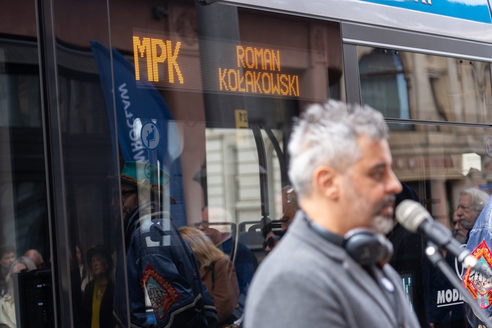 51 / 59 Wróć do artykułu Roman Kołakowski 12. patronem wrocławskiego tramwaju Roman Kołakowski 12. patronem wrocławskiego tramwaju Grzegorz Rajter Przejdź do poprzedniego zdjęcia. Poprzednie Następne Przejdź do kolejnego zdjęcia. Uroczyste nadanie imienia Romana Kołakowskiego tramwajowi MPK Wrocław, 23 marca 2024