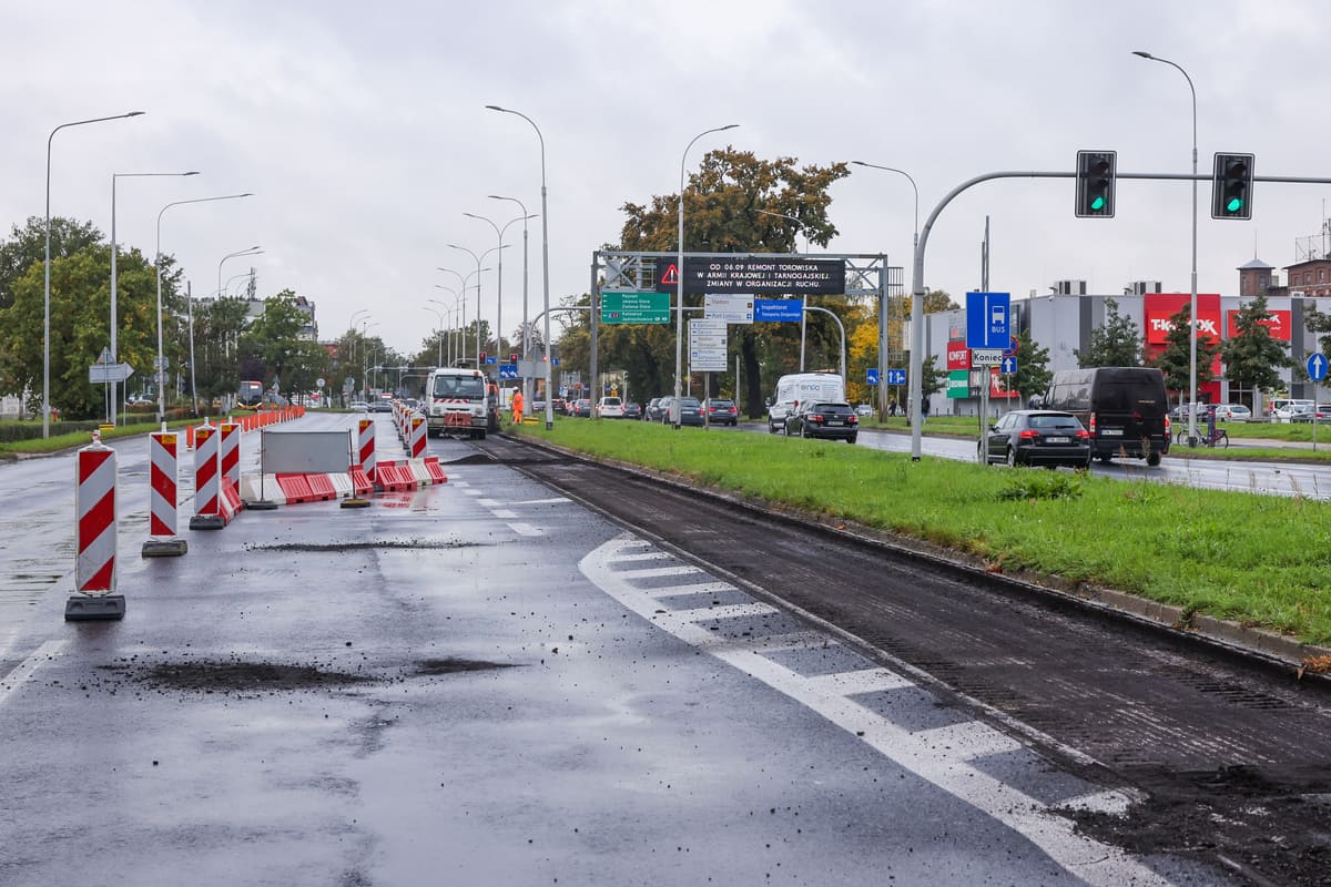 7 / 11 Wróć do artykułu Uwaga kierowcy. Trwa remont jezdni na ulicy Krzywoustego Uwaga kierowcy. Trwa remont jezdni na ulicy Krzywoustego Tomasz Hołod Przejdź do poprzedniego zdjęcia. Poprzednie Następne Przejdź do kolejnego zdjęcia. Remont na Krzywoustego. Wrocław, 06.10.2025