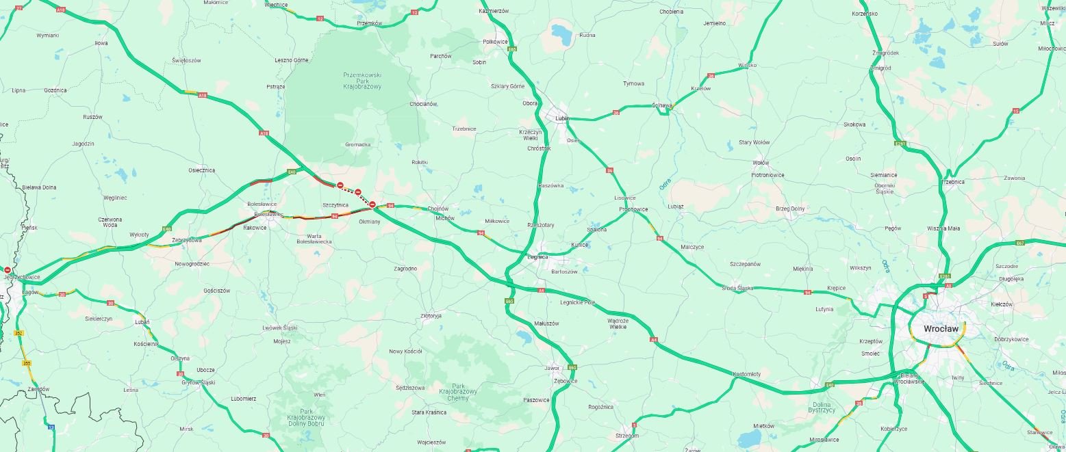 AKTUALIZACJA. Godz. 12:04 Pas lewy w kierunku Zgorzelca został odblokowany, brak utrudnień w k. Zgorzelca. Jezdnia w kierunku Wrocławia pozostaje dalej zablokowana - szacowany czas zakończenia utrudnienia ok. godziny 15:30