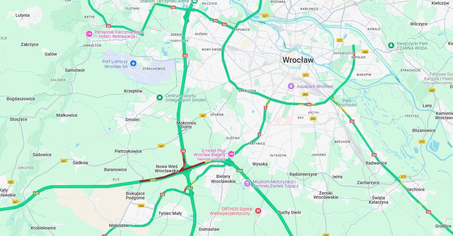 Generalna Dyrekcja Dróg Krajowych i Autostrad informuje u utrudnieniach na autostradzie A4 koło Wrocławia.