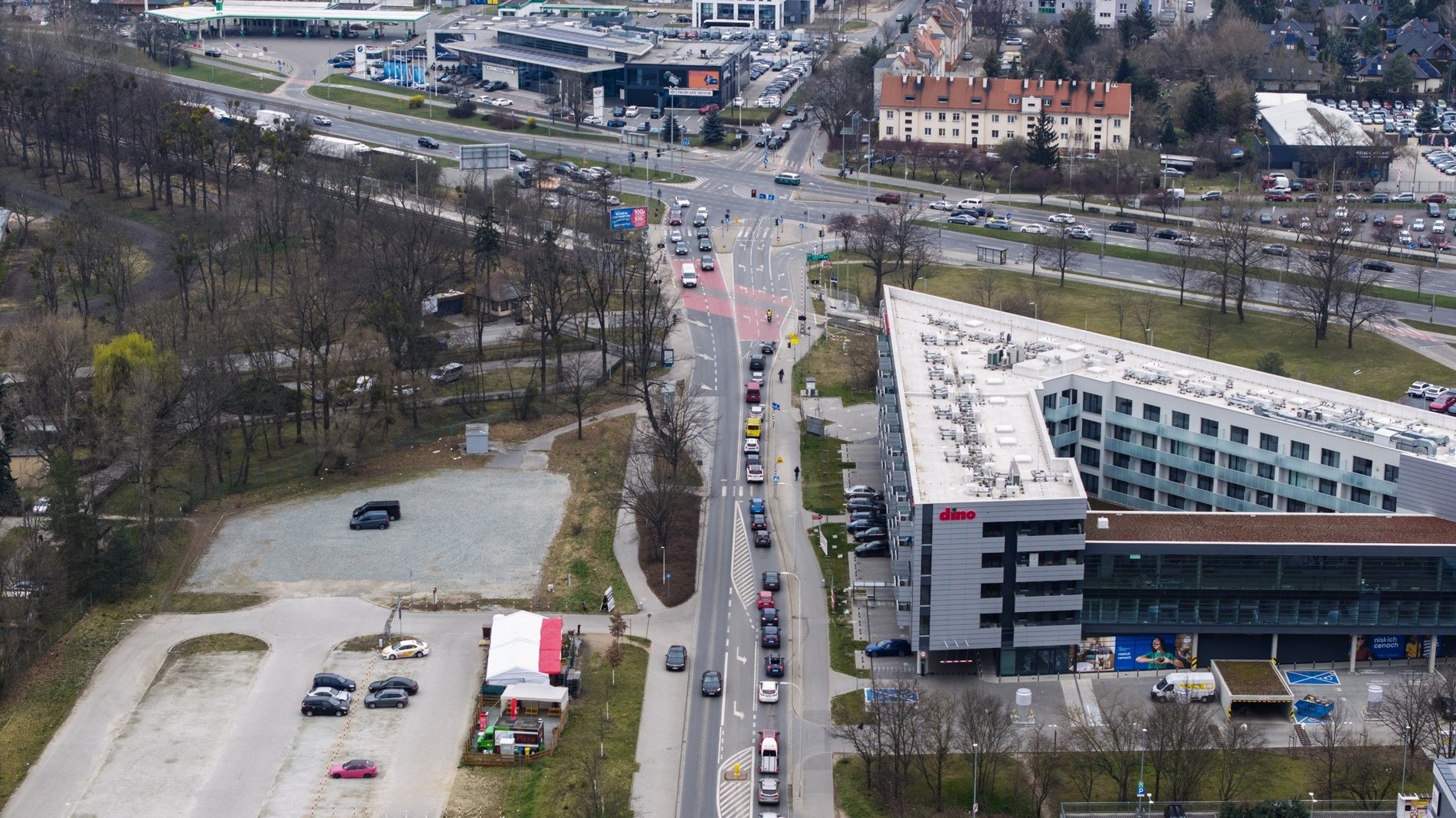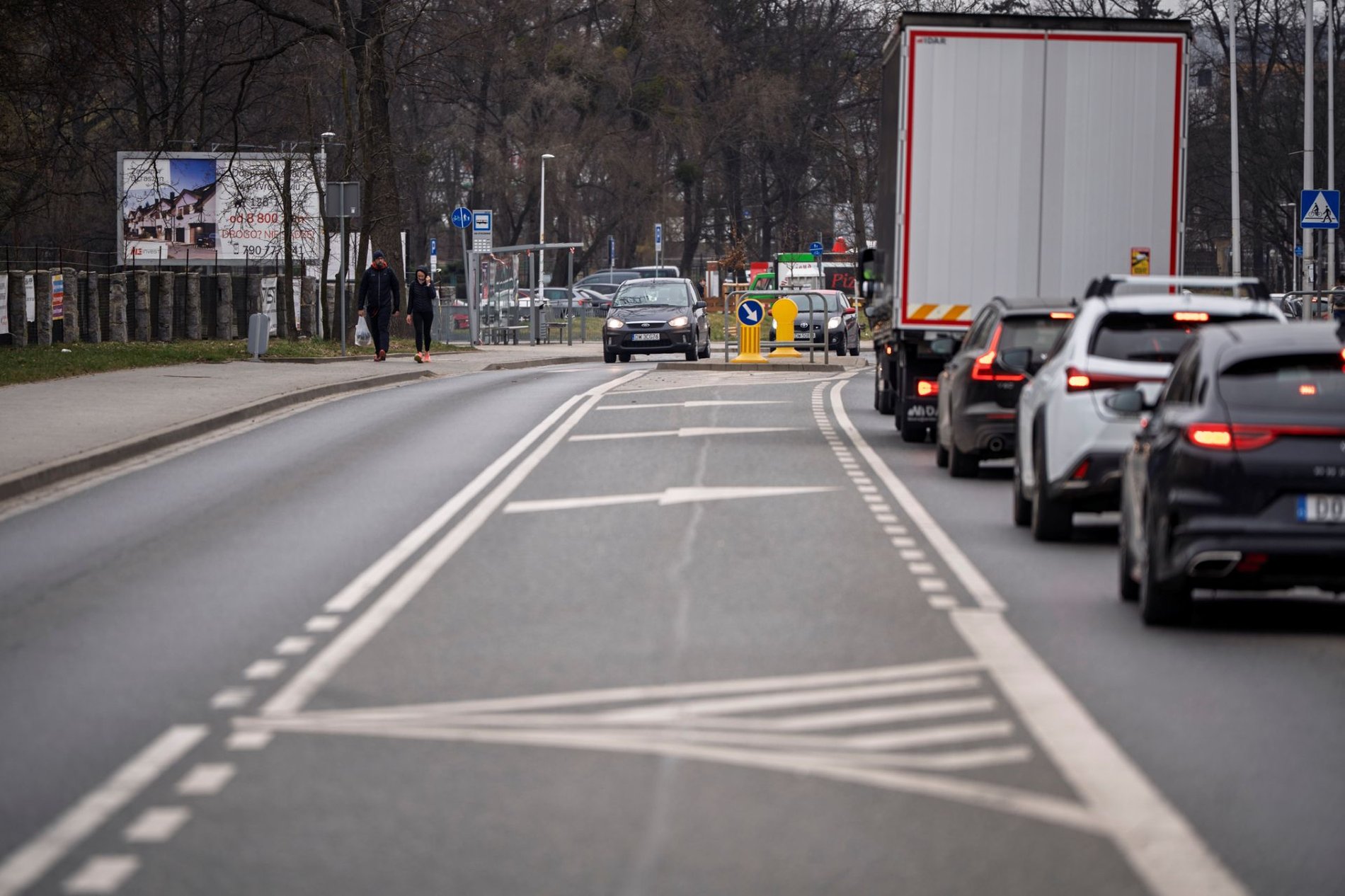 - Rozbudowę jezdni o dodatkowe pasy do skrętu w lewo oraz prawo.