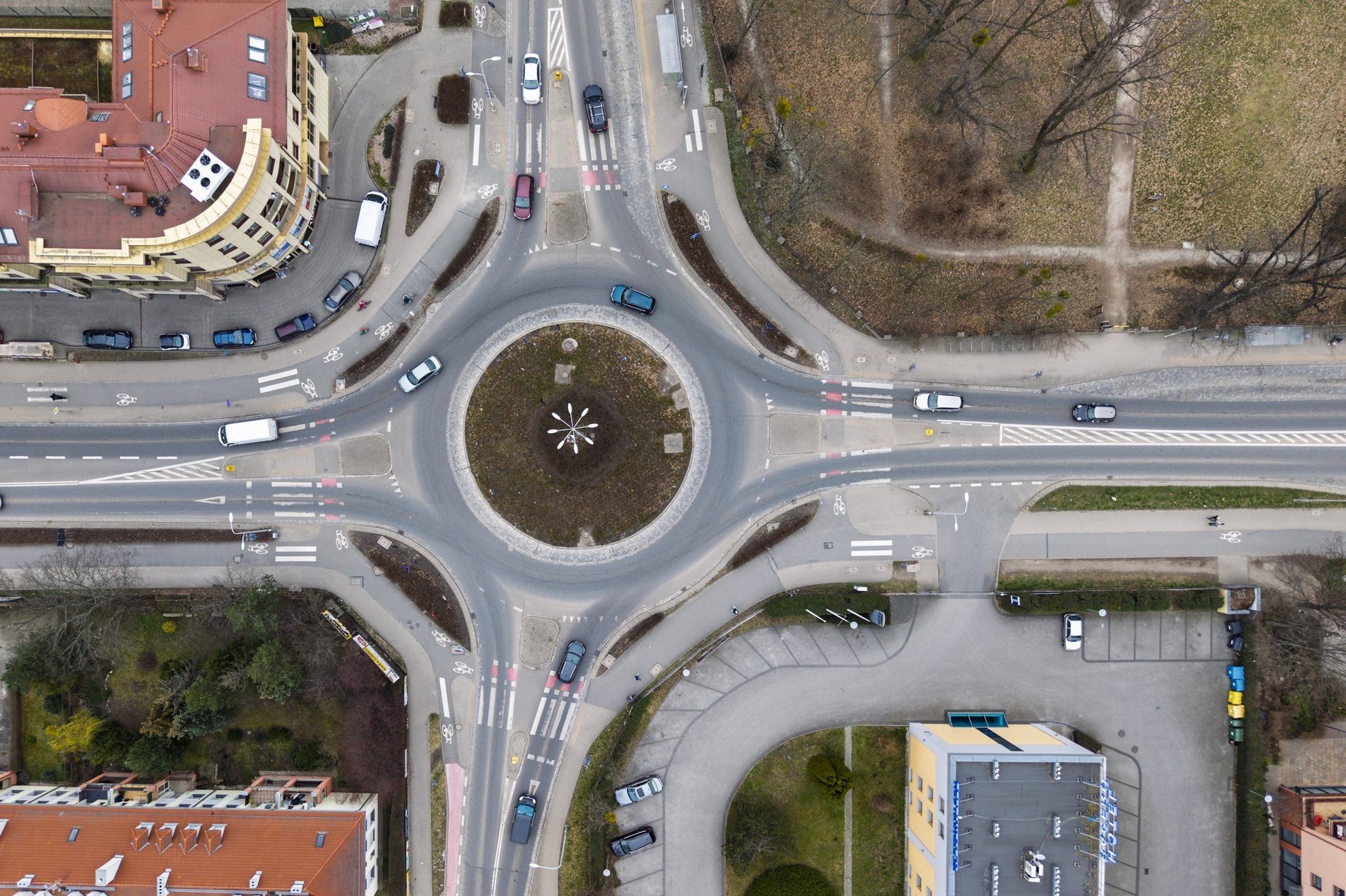 - Każdy wlot wyposażony w dodatkowe pasy do skrętu w lewo oraz prawo.