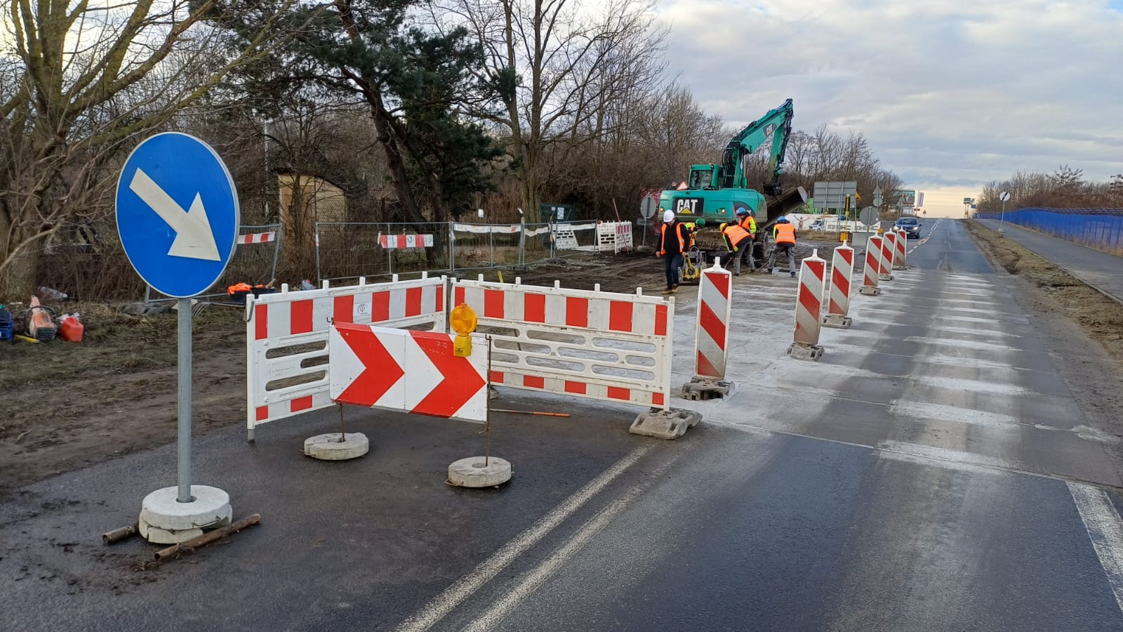 Na odcinku przy rondzie w ciągu ferii zimowych wykonawca przeprowadził pełną wymianę gruntu oraz stabilizację podłoża. Nowe warstwy konstrukcji jezdni zostały przykryte nawierzchnią tymczasową z płyt betonowych. Docelowo na podbudowę ułożone zostaną dwie warstwy nawierzchni z betonu asfaltowego.