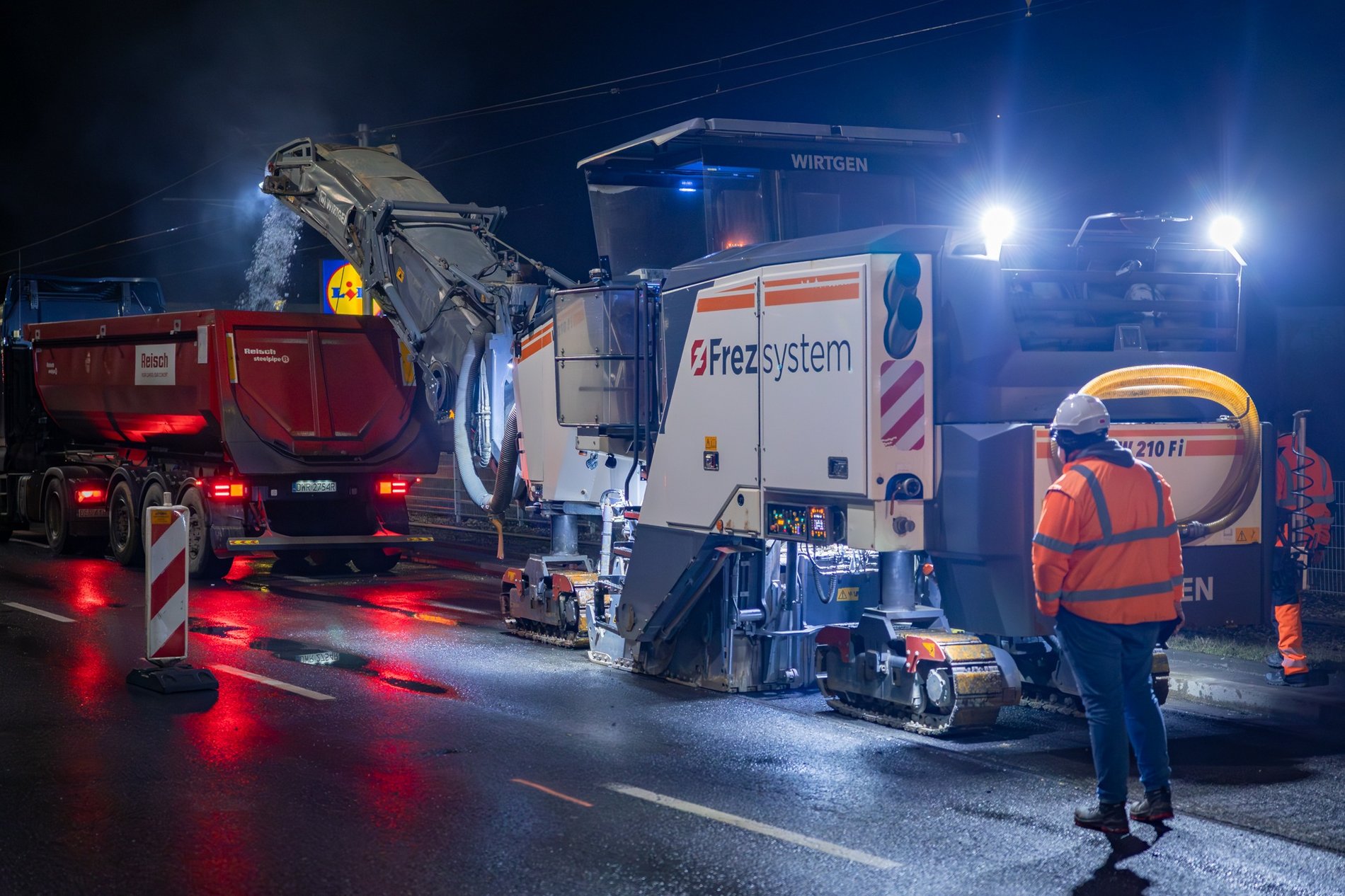 W niedzielę wieczorem wykonawca zaczął frezowanie asfaltu na odcinku ul. Powstańców Śląskich między Orlą a Krzycką. Na pierwszy ogień poszedł prawy pas ruchu jezdni w kierunku wyjazdu z miasta. Na zdjęciach naszego fotoreportera - Bartosza Mokrzyckiego możecie zobaczyć, jak "pazury" maszyny frezującej radziły sobie z asfaltem.