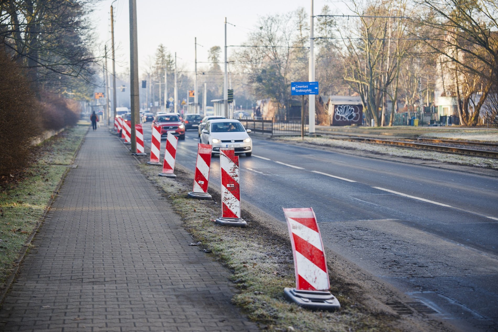 Remont ul. Grabiszyńskiej. Zwężenie przy parku