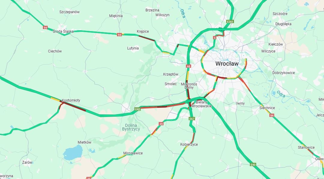 Mapa. Korki i utrudnienia na A4 i Wschodniej Obwodnicy Wrocławia