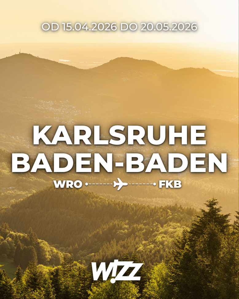 Loty z Wrocławia do Karlsruhe/Baden-Baden będą realizowane dwa razy w tygodniu przez linię lotniczą Wizz Air, od 15 kwietnia do 20 maja.