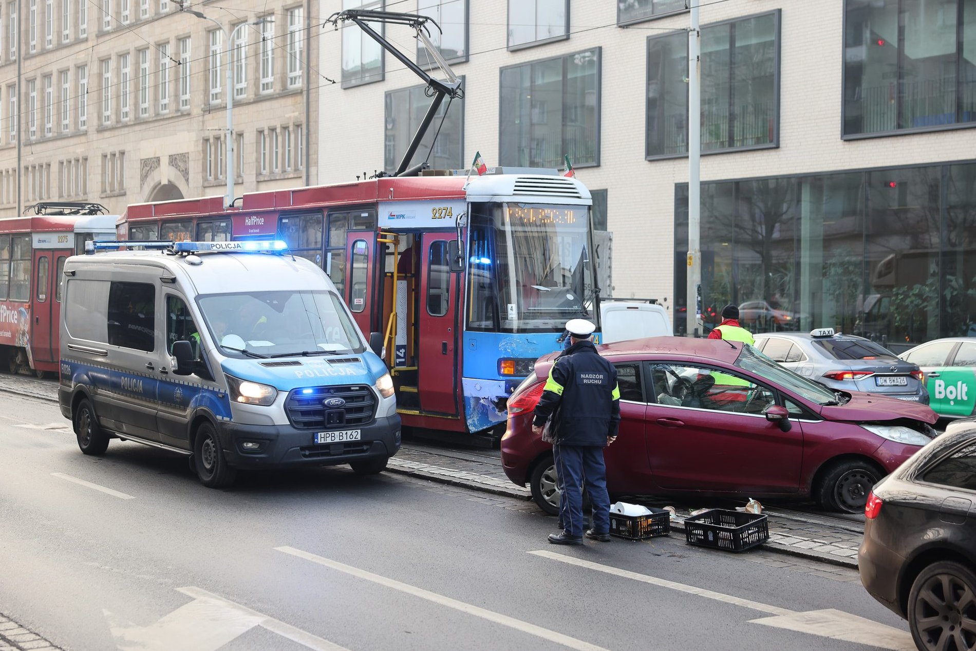 - Tramwaje linii 4 jadące w stroną Oporowa oraz linii 5 jadące w stronę Grabiszyńskiej zostały skierowane objazdem przez ul. Powstańców Śląskich, al. Hallera.