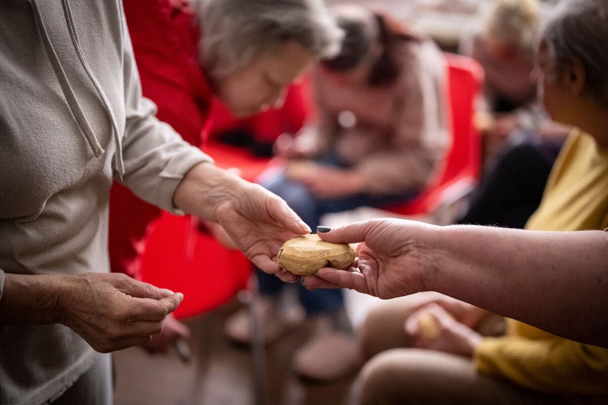 14 / 38 Wróć do artykułu Widzieliście kiedyś 1000 kamiennych bułek? Widzieliście kiedyś 1000 kamiennych bułek? Małgorzata Kujda Przejdź do poprzedniego zdjęcia. Poprzednie Następne Przejdź do kolejnego zdjęcia. ręce dwóch osób, przekazujących sobie bułkę
