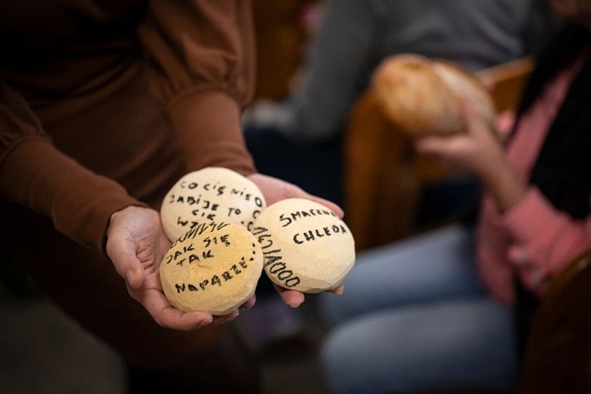15 / 38 Wróć do artykułu Widzieliście kiedyś 1000 kamiennych bułek? Widzieliście kiedyś 1000 kamiennych bułek? Małgorzata Kujda Przejdź do poprzedniego zdjęcia. Poprzednie Następne Przejdź do kolejnego zdjęcia. ręce kobiety, trzymającej trzy kamienne bułki z podpisami