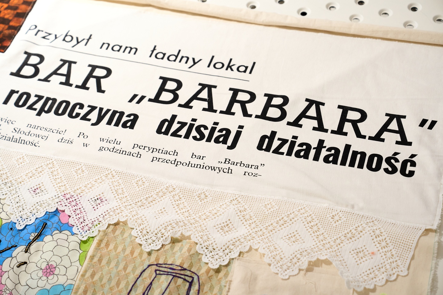 37 / 38 Wróć do artykułu Barbara na Świdnickiej ma 60 lat! Z tej okazji powstała tkanina z historią Barbara na Świdnickiej ma 60 lat! Z tej okazji powstała tkanina z historią fot. Oleksandr Poliakovsky Przejdź do poprzedniego zdjęcia. Poprzednie Następne Przejdź do kolejnego zdjęcia. Fragmenty tkaniny artystycznej, która od 29 października ozdobi ścianę w Barbarze