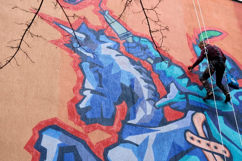 13 / 32 Wróć do artykułu Filip „SKONT” Niziołek i przyjaciele kończą nowy mural na Królewskiej [ZDJĘCIA] Filip „SKONT” Niziołek i przyjaciele kończą nowy mural na Królewskiej [ZDJĘCIA] fot. Oleksandr Poliakovsky Przejdź do poprzedniego zdjęcia. Poprzednie Następne Przejdź do kolejnego zdjęcia. Prace nad nowym muralem przy Królewskiej