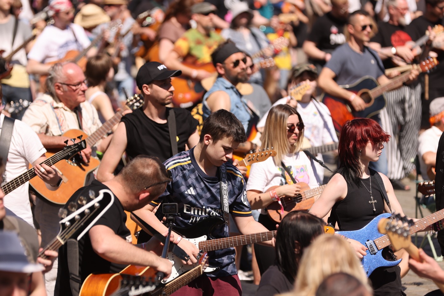87 / 122 Wróć do artykułu Gitarowy Rekord Świata 2024 na 7531 gitar! [ZDJĘCIA] Gitarowy Rekord Świata 2024 na 7531 gitar! [ZDJĘCIA] fot. Tomasz Hołod Przejdź do poprzedniego zdjęcia. Poprzednie Następne Przejdź do kolejnego zdjęcia. Gitarzyści na wrocławskim rynku. Gitarowy Rekord Świata 2024