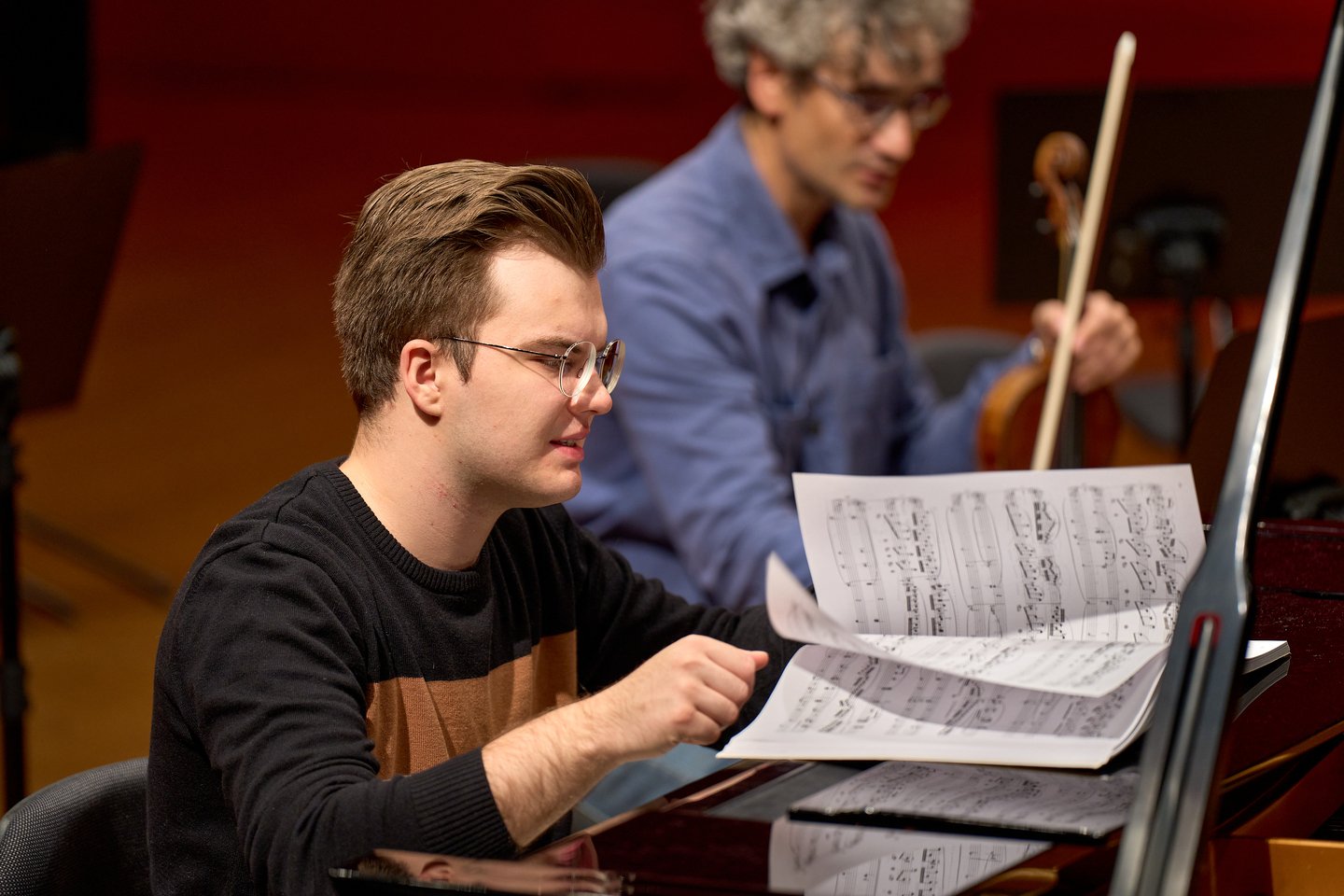 Piotr Alexewicz podczas próby z Christianem Danowiczem, koncermistrzem NFM Orkiestry Leopoldinum