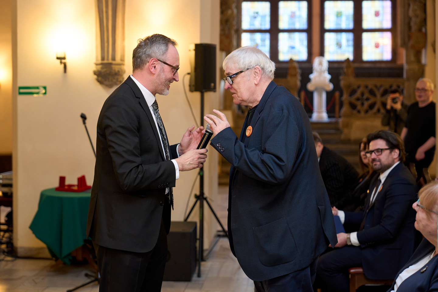 Gala wręczenia Nagrody „Odry” w Ratuszu połączona z jubileuszem 65-lecia pisma – Grzegorz Jankowicz, dyrektor Instytutu Książki z laureatem Bohdanem Zadurą