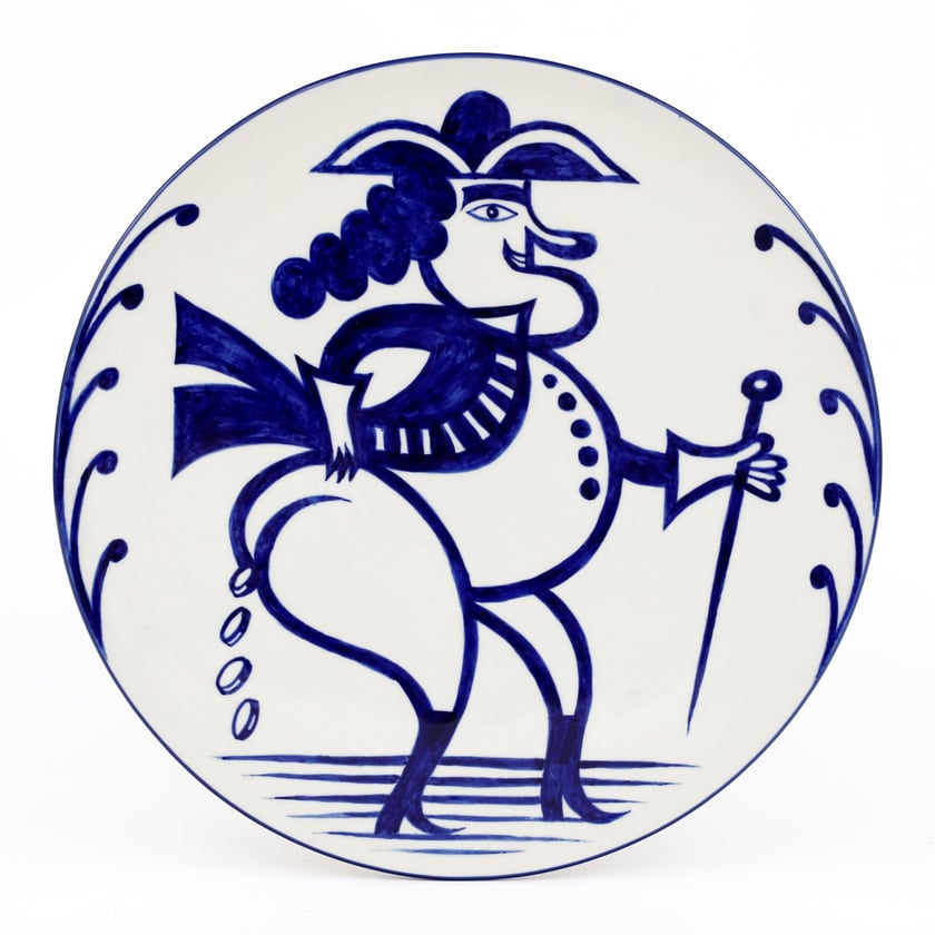 Talerz z Ceramiki Artystycznej w Bolesławcu malowany ręcznie przez Tomasza Brodę przedstawiający bankiera Moro