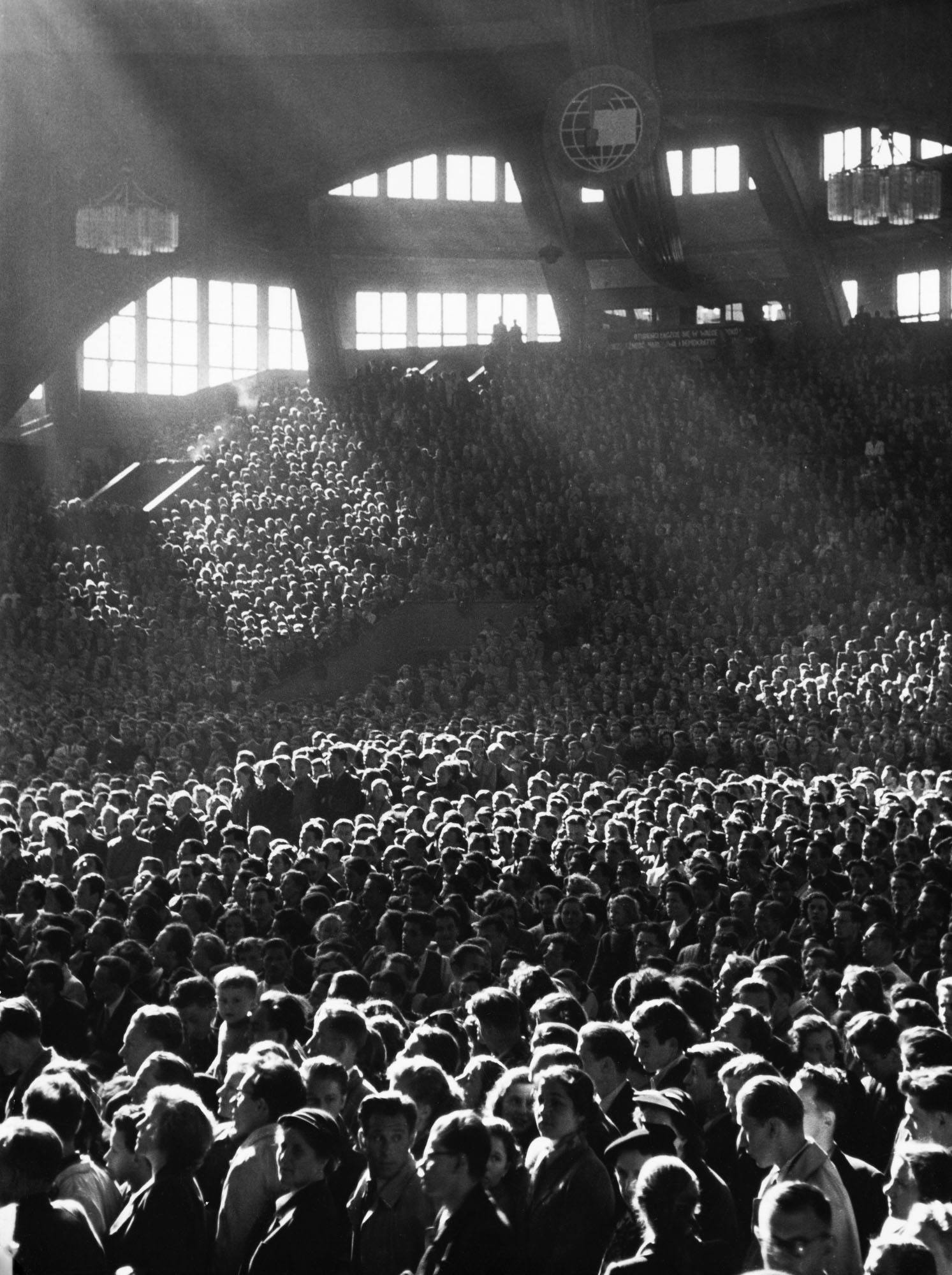 Wrocław, ul. Świdnicka przy PDT w kierunku Rynku (Stalingradzka, tramwaj, ciężarówki, piesi), 1955?