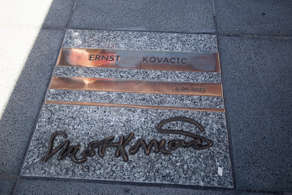 Tablica pamiątkowa przed NFM – dyrygent i skrzypek Ernst Kovacic