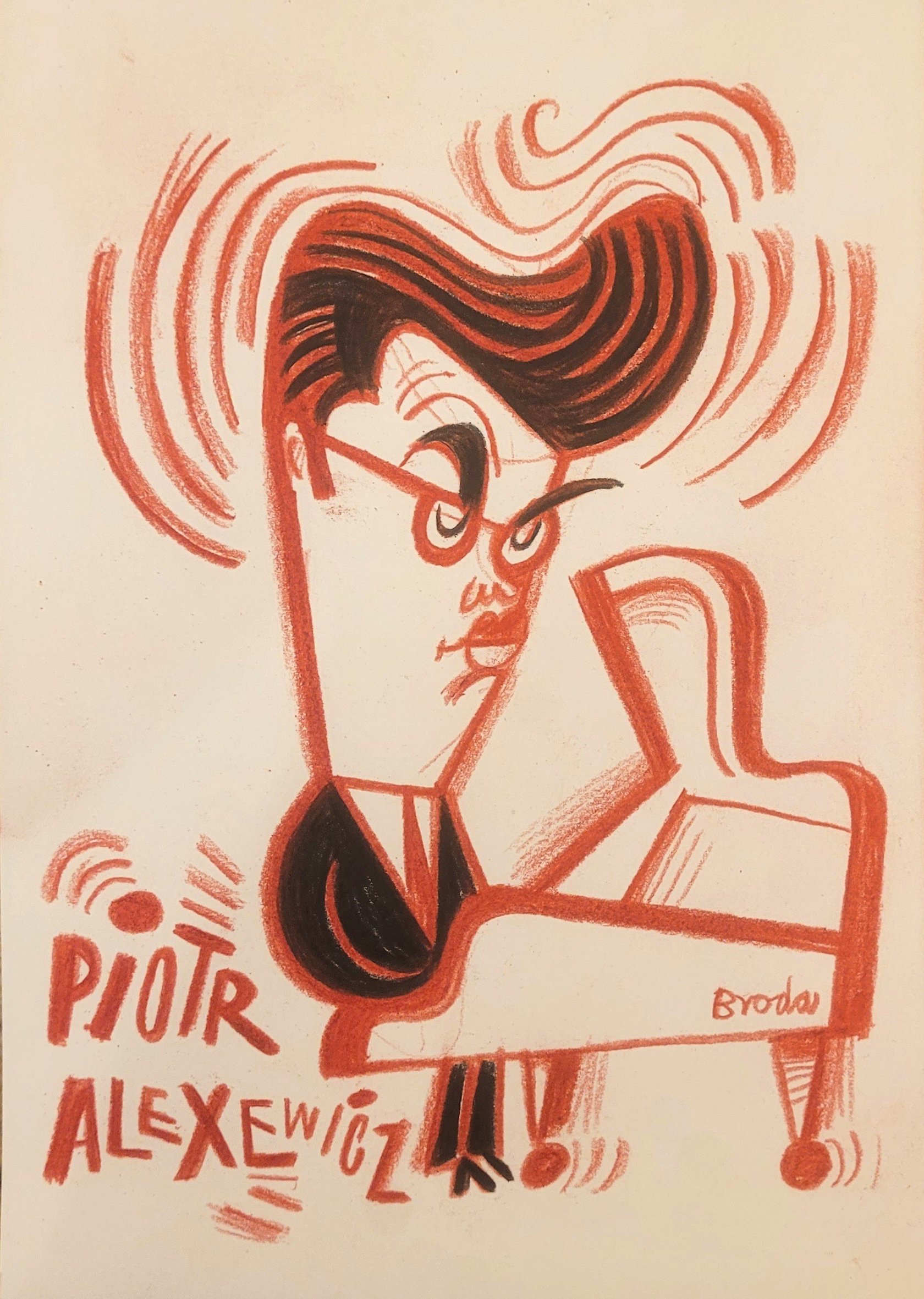Piotr Alexewicz w finale Konkursu Chopinowskiego w karykaturze Tomasza Brody