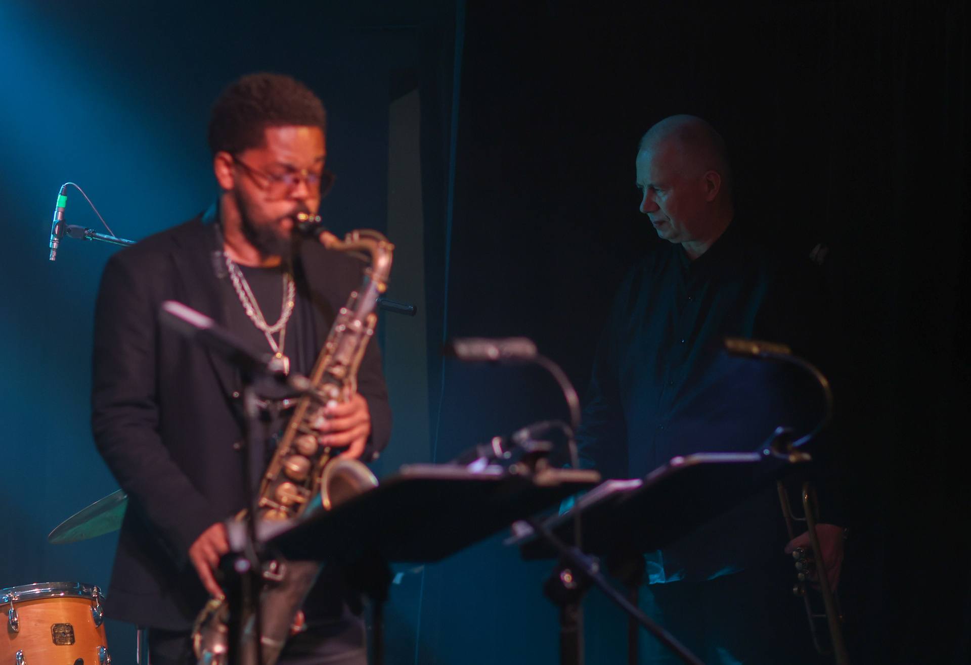 4 / 15 Wróć do artykułu Na zakończenie Zaduszek: trąbka Piotra Wojtasika i saksofon Marka Shima Na zakończenie Zaduszek: trąbka Piotra Wojtasika i saksofon Marka Shima fot. Tomasz Hołod Przejdź do poprzedniego zdjęcia. Poprzednie Następne Przejdź do kolejnego zdjęcia. Zaduszki Jazzowe w Firleju, kwintet Piotra Wojtasika, 2 listopada 2025