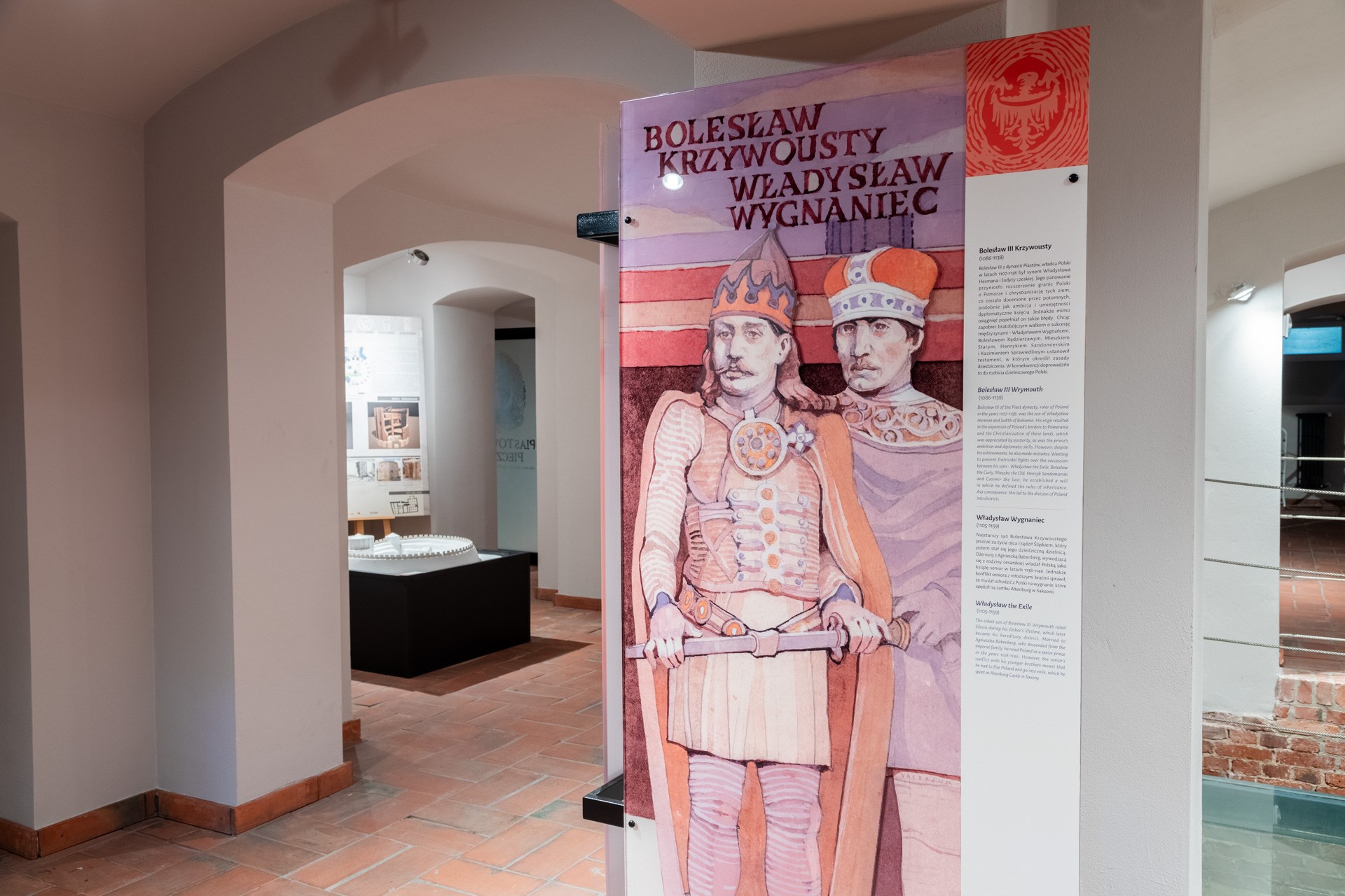 Tablice z biografiami najważniejszych postaci, które wywarły realny wpływ na rozwój Ostrowa Tumskiego i samego zamku