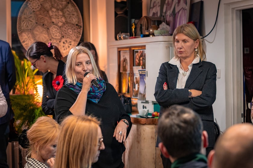 Renata Piwko-Wolny z zarządu osiedla Strachocin-Swojczyce-Wojnów i wiceprezydent Renata Granowska na spotkaniu z mieszkańcami przy Swojczyckiej 118