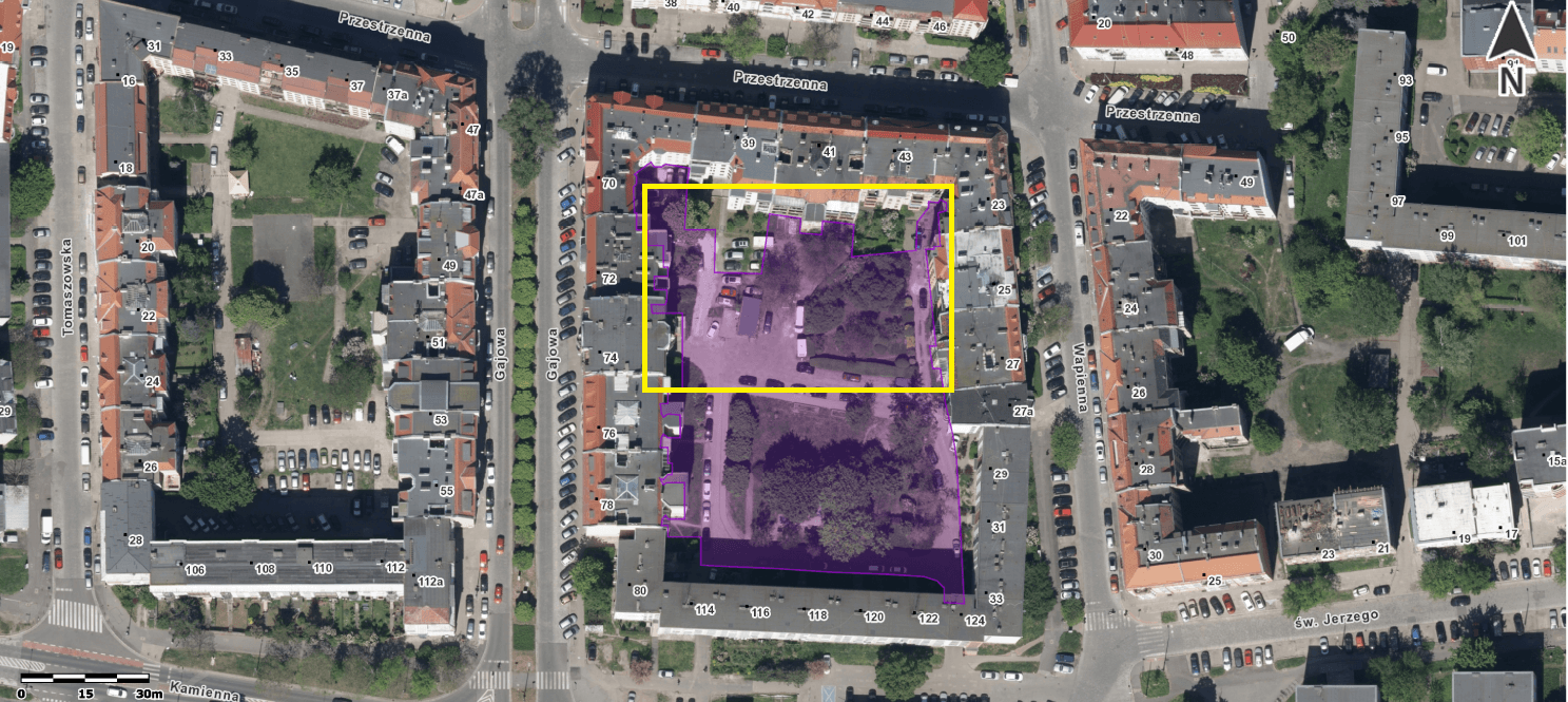 Zagospodarowanie części północnej podwórka gminnego w kwartale ulic: Gajowa, Przestrzenna, Wapienna i Kamienna, część dz. nr 39/18; Obręb Południe AM–28.