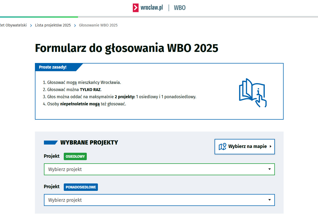 Głosować może każdy mieszkaniec Wrocławia, bez względu na wiek (prawo głosu mają również dzieci), miejsce zameldowania i obywatelstwo.