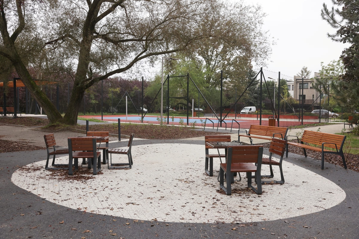 Kawałek dalej, po drugiej stronie osiedla, ukończono w tym roku drugi etap Parku Rekreacyjnego Mikołowska. To kontynuacja zagospodarowania terenu w ramach projektu WBO nr 224 z 2023. W parku pojawiło się wielofunkcyjne, oświetlone boisko i wyposażona w stoliki szachowe strefa wypoczynku dla seniorów.
