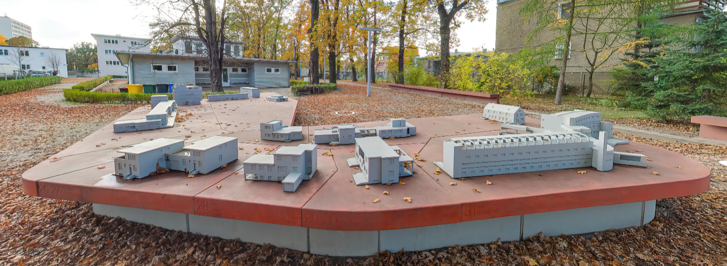 Teren całego osiedla rozciąga się między kilkoma ulicami. Obszar jest dość rozległy i dlatego dla zwiedzających wprowadzono elementy informacyjne o oglądanych właśnie budynkach. Rolę informacyjną spełniają betonowe ławy ustawione przed budynkami dawnej wystawy. Szerszą możliwość zapoznania się z przestrzenią i architekturą historycznego osiedla daje makieta osiedla.