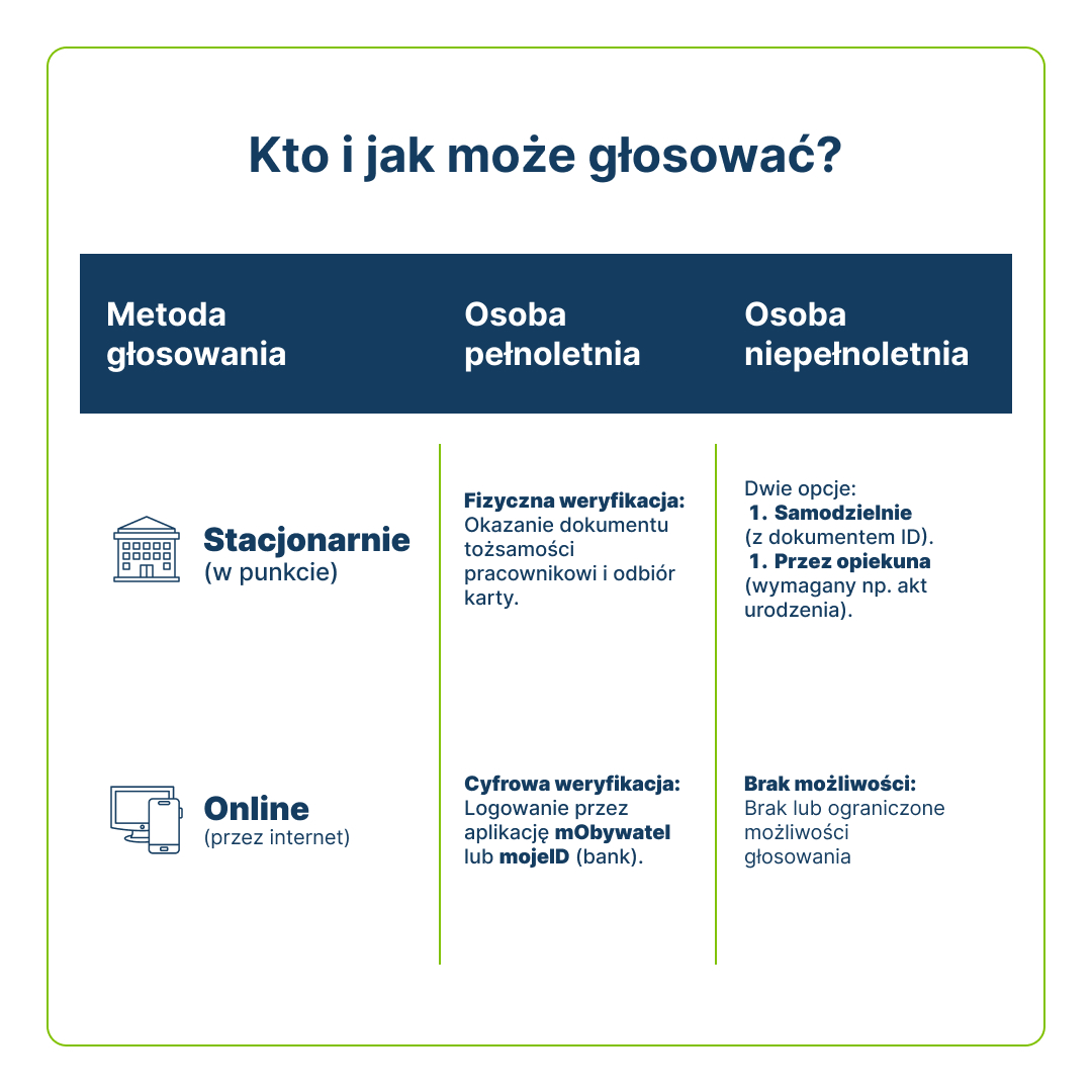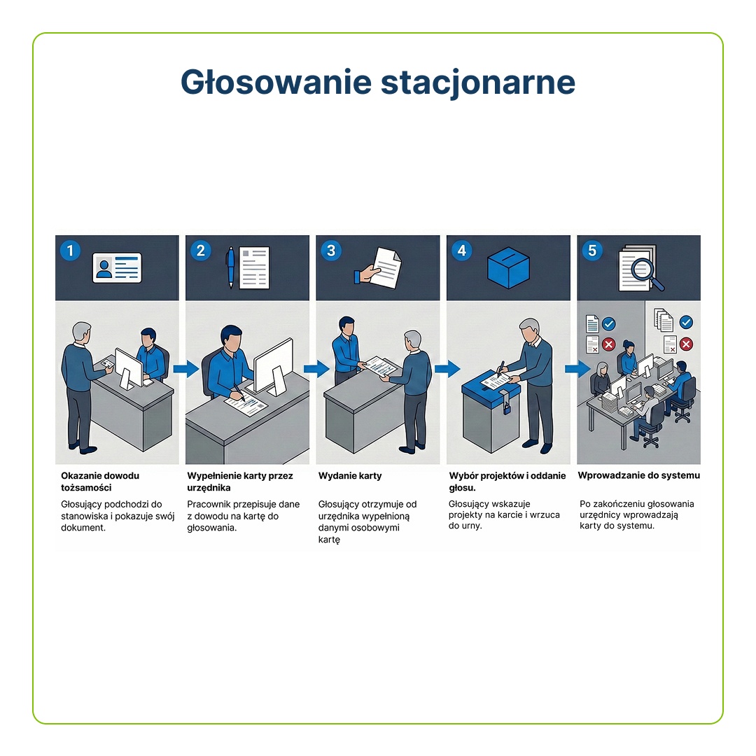 - Punkty stacjonarne i mobilny punkt do głosowania (bus)