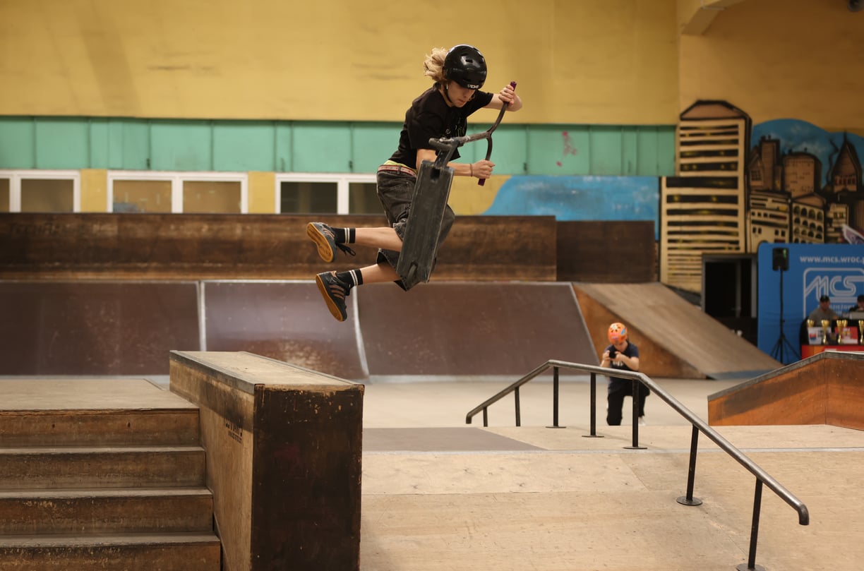 56 / 62 Wróć do artykułu Zawody w wyczynowej jeździe na hulajnodze [ZDJĘCIA] Zawody w wyczynowej jeździe na hulajnodze [ZDJĘCIA] fot. Tomasz Hołod Przejdź do poprzedniego zdjęcia. Poprzednie Następne Przejdź do kolejnego zdjęcia. MC Scoot Dżem 2 to już druga edycja zawodów w wyczynowej jeździe na hulajnodze
