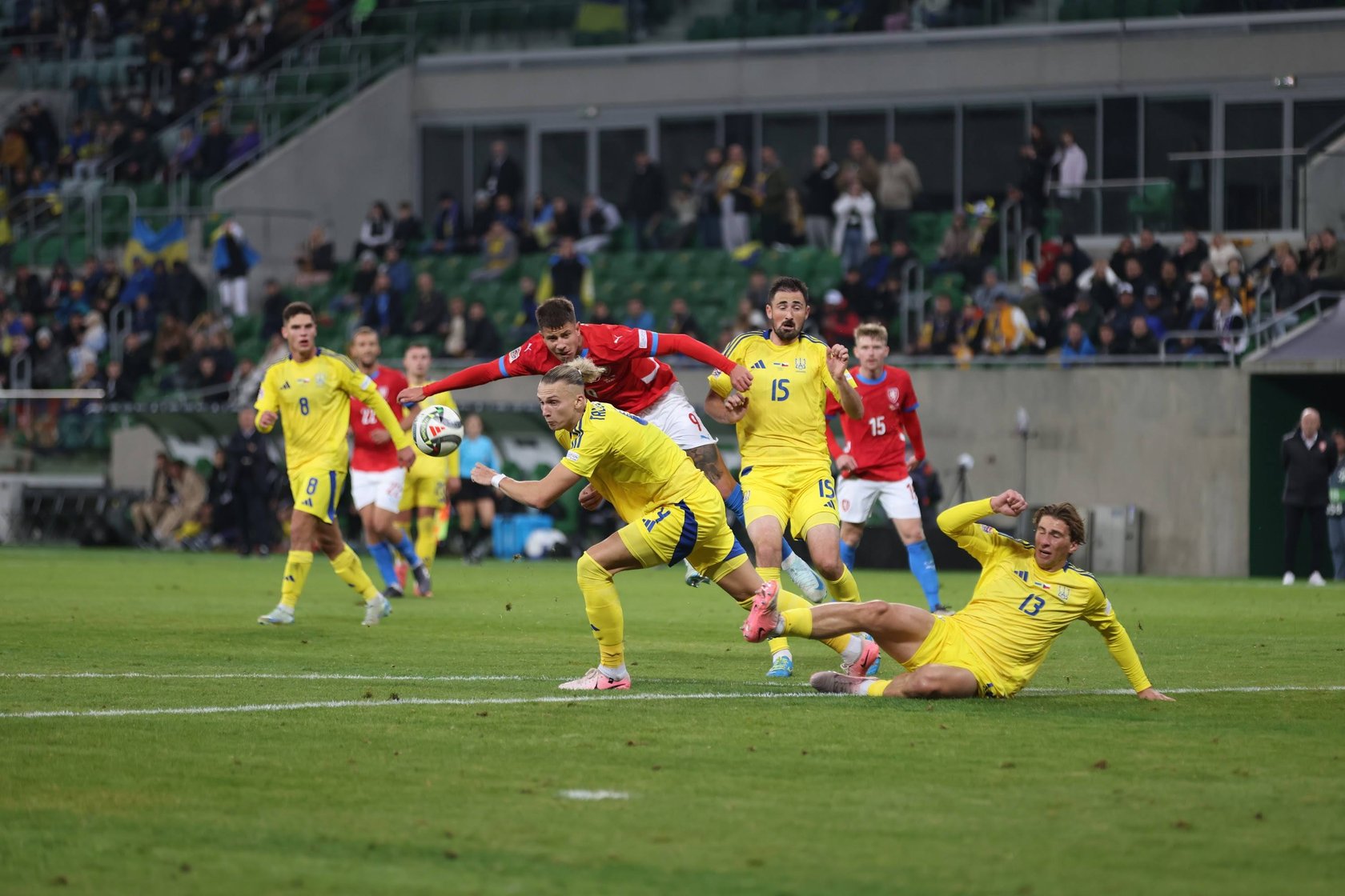13 / 142 Wróć do artykułu Ukraina zremisowała z Czechami 1:1 na Tarczyński Arenie Ukraina zremisowała z Czechami 1:1 na Tarczyński Arenie Tomasz Hołod / Redakcja www.wroclaw.pl Przejdź do poprzedniego zdjęcia. Poprzednie Następne Przejdź do kolejnego zdjęcia. Piłkarze Ukrainy i Czech podczas meczu na Tarczyński Arenie we Wrocławiu - 14 października 2024