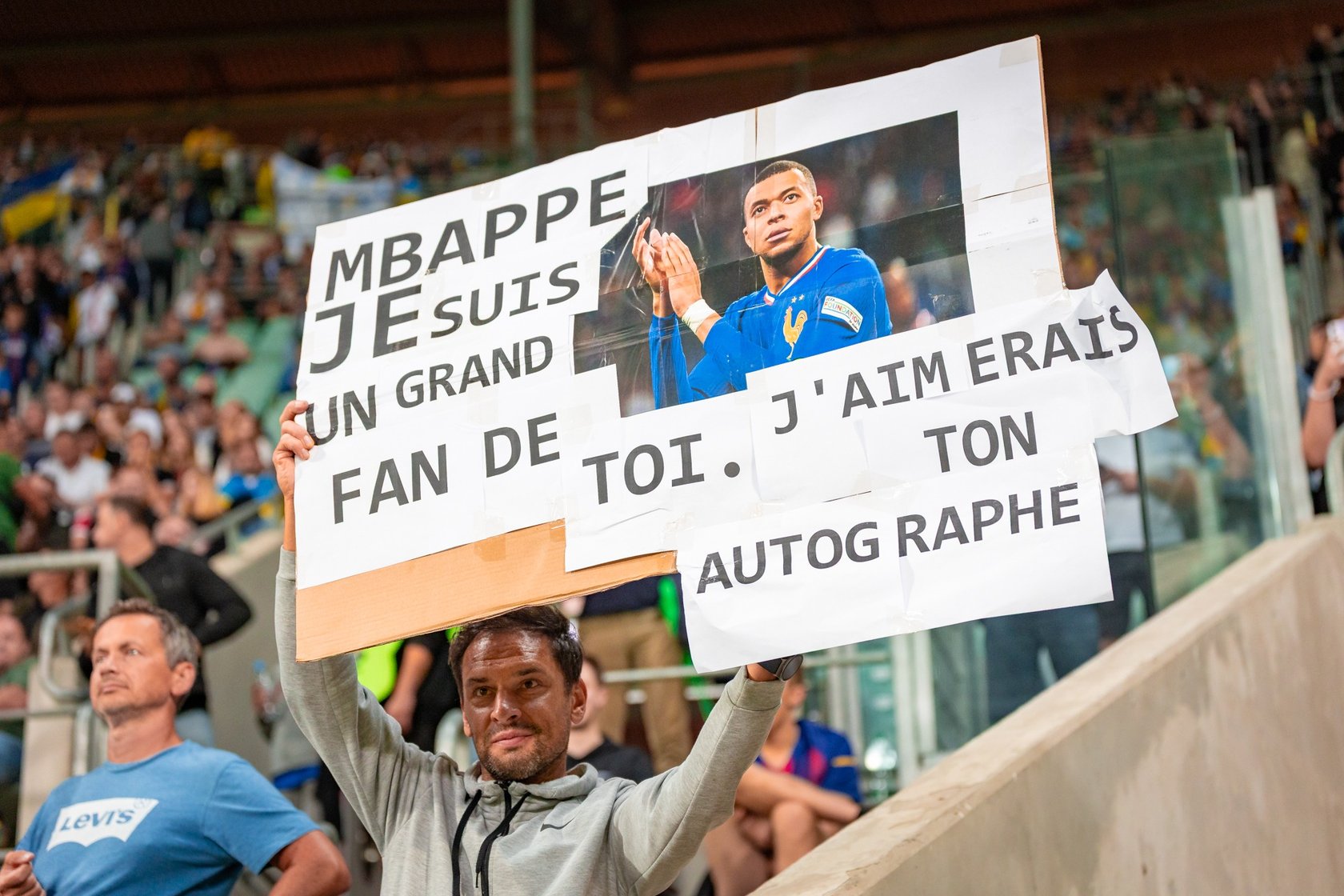 86 / 142 Wróć do artykułu Mbappe strzelił, Francja górą. Zdjęcia z meczu z Ukrainą Mbappe strzelił, Francja górą. Zdjęcia z meczu z Ukrainą fot. Bartosz Mokrzycki Wroclaw.pl Przejdź do poprzedniego zdjęcia. Poprzednie Następne Przejdź do kolejnego zdjęcia. Kibic z transparentem "Mbappe, jestem twoim wielkim fanem. Chciałbym twój autograf".
